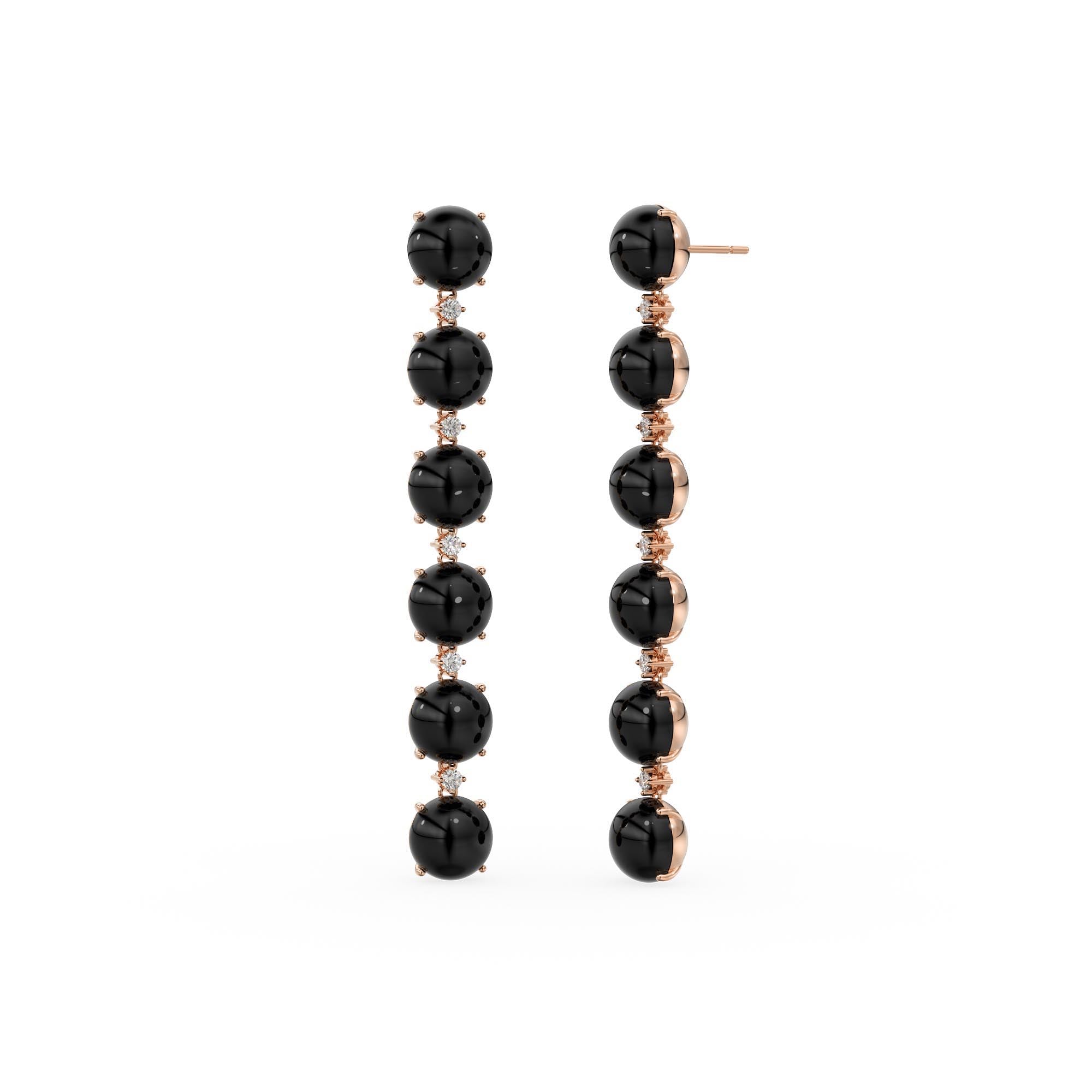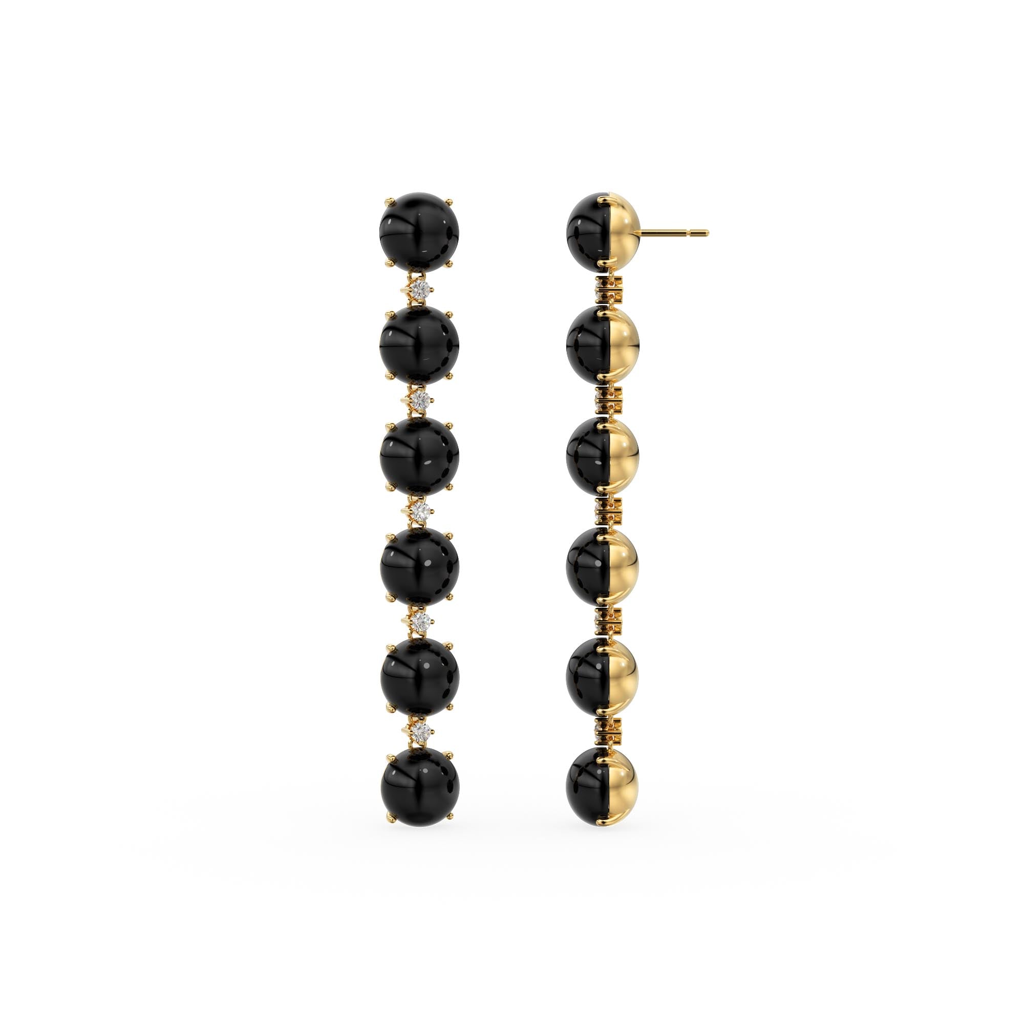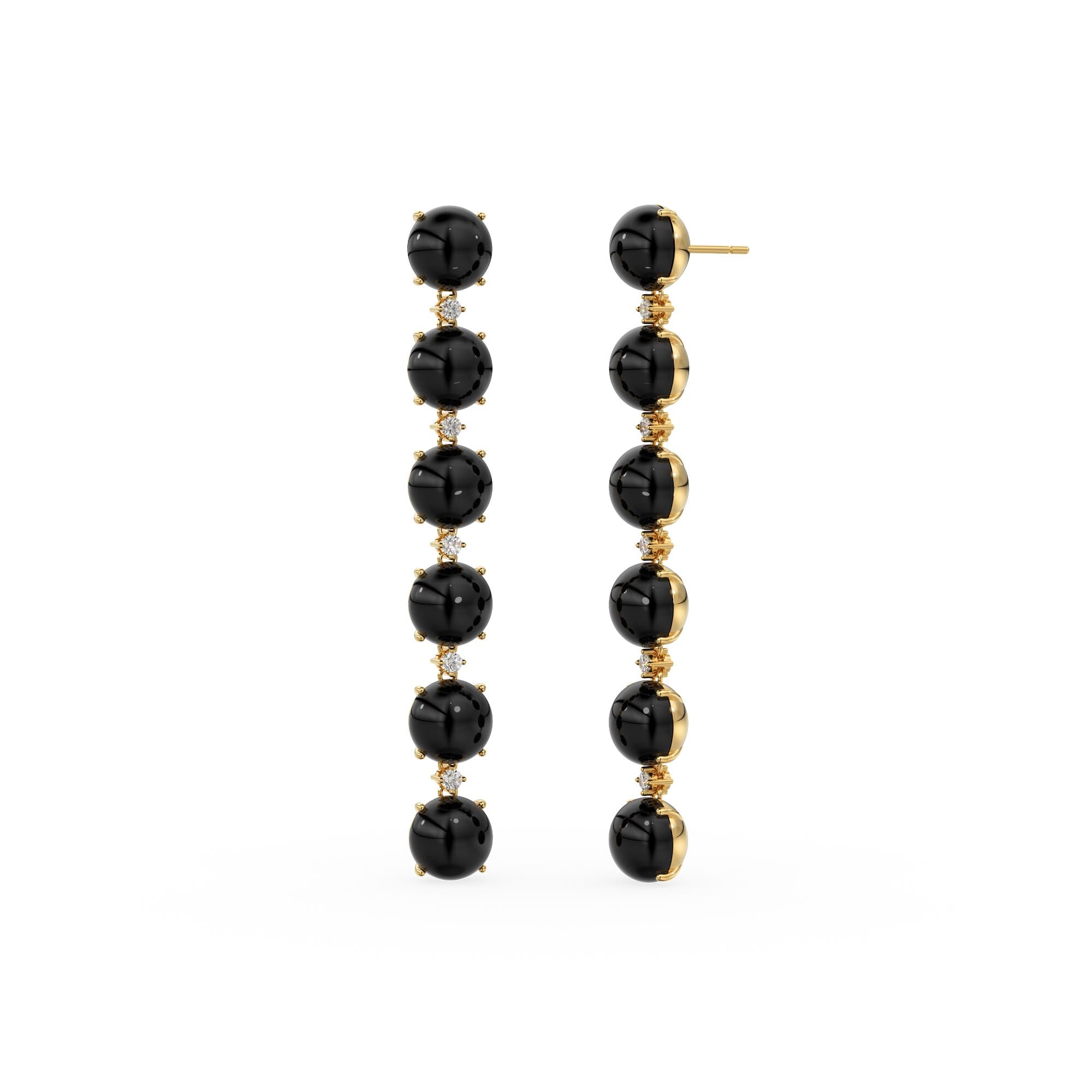 Black Onyx Diamond Earrings / 14k Gold Earrings / Diamond Gemstone Earrings / Cabochon Diamond Earrings / Luxury Jewelry