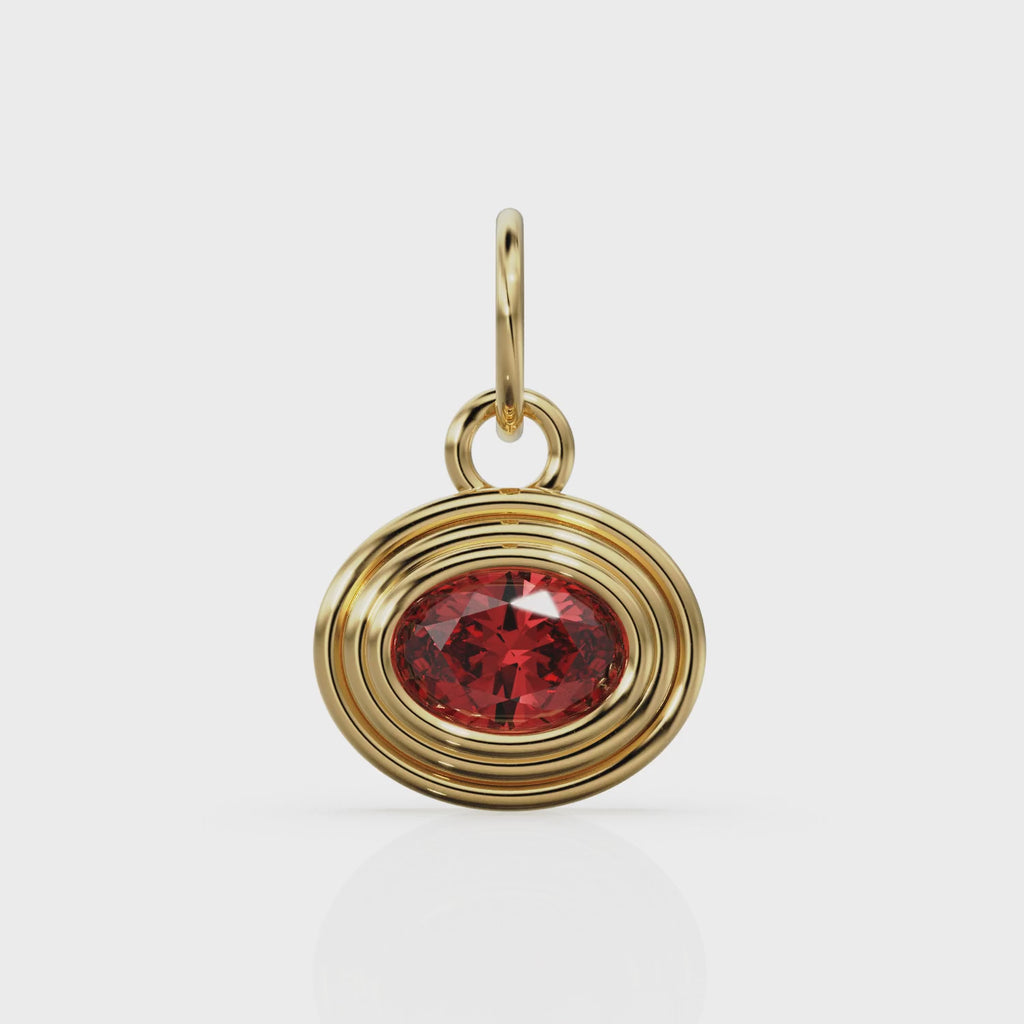 AAA Red Ruby Charms 14k Yellow Solid Gold Bubble Bezel Charm Pendant Red Oval Gemstone Bezel 18K Gold Jewelry Finding