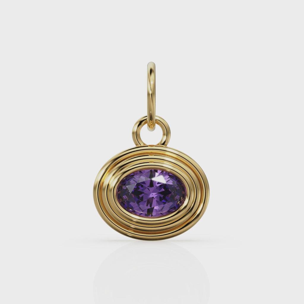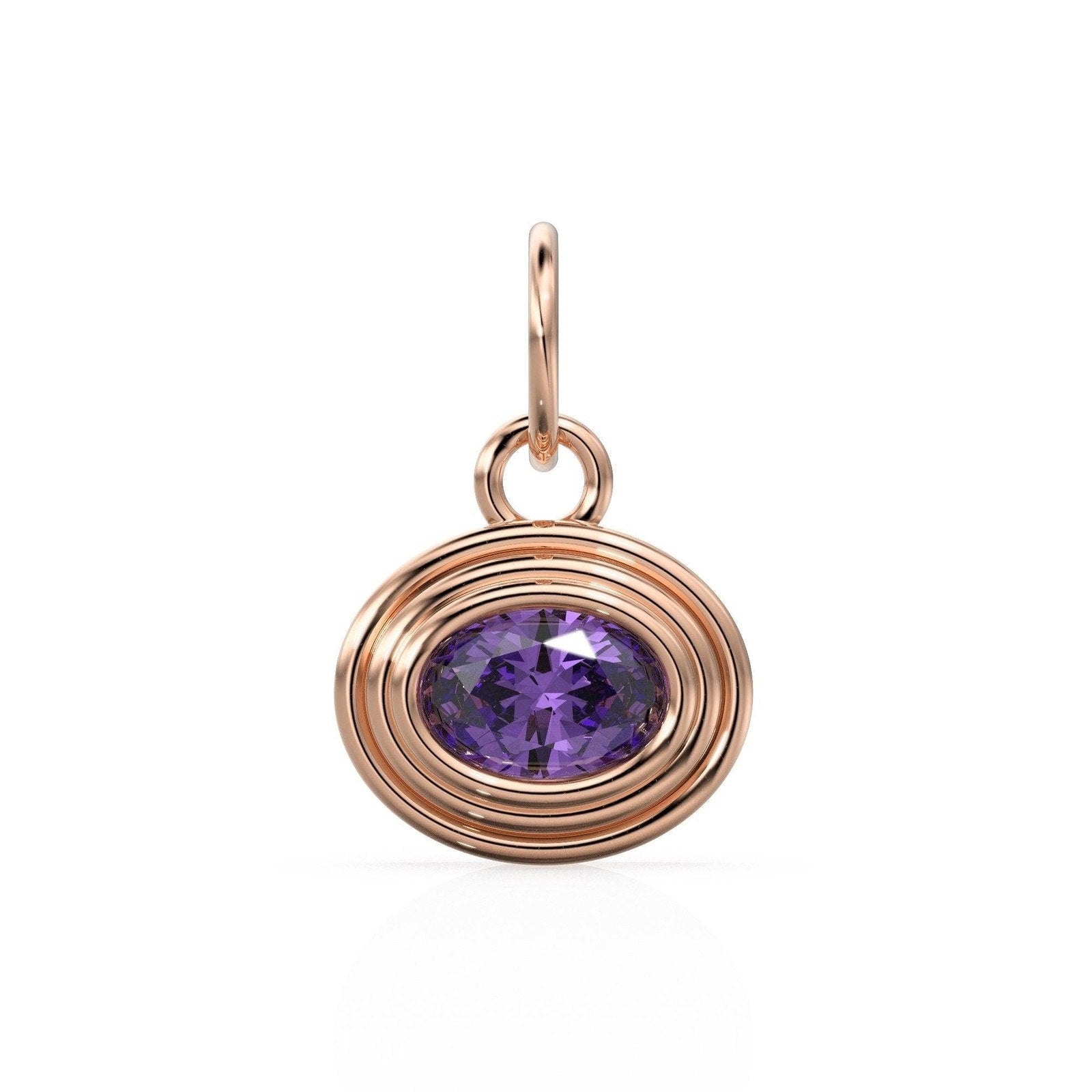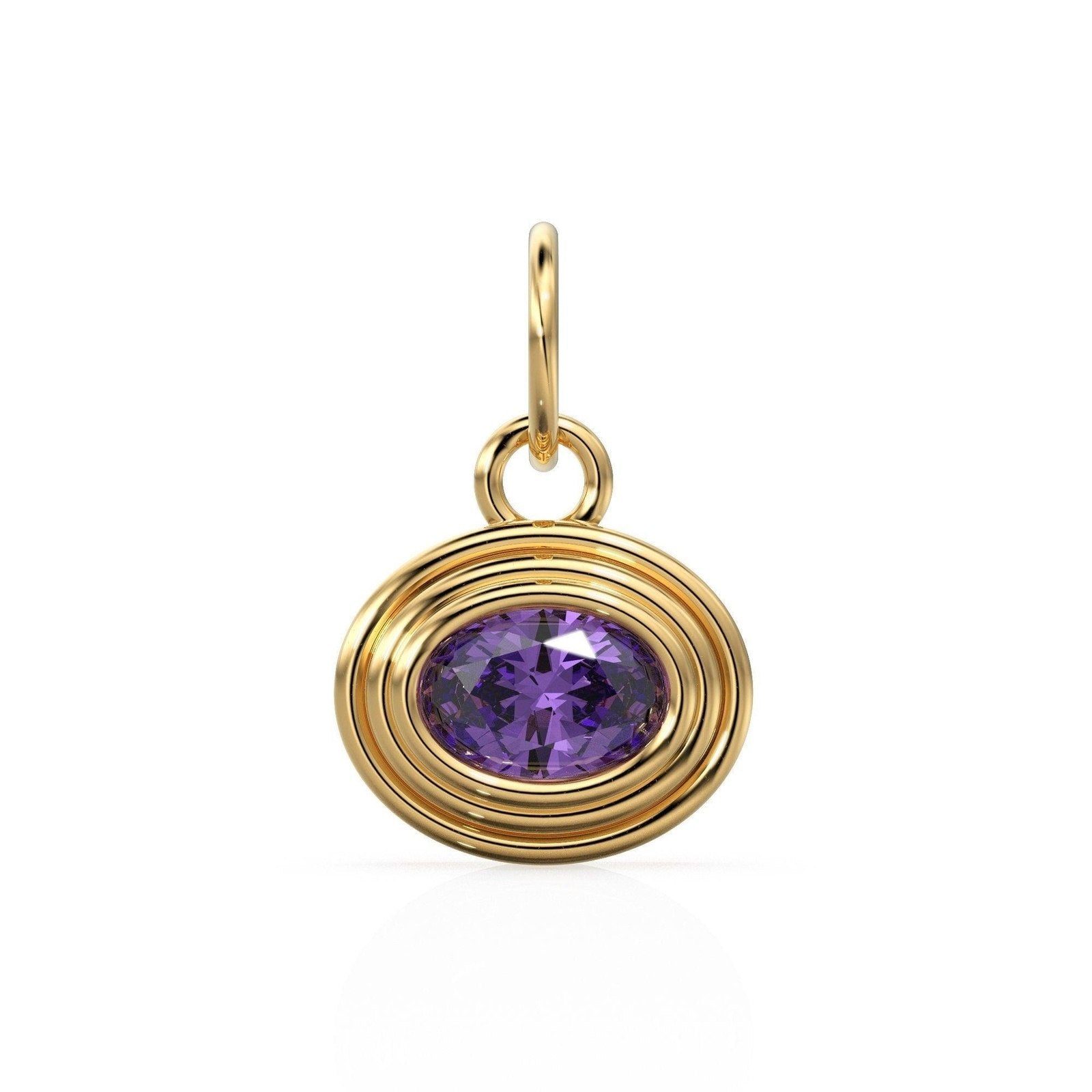 African Amethyst Charms 14k Yellow Solid Gold Bubble Bezel Charm Pendant Purple Oval Gemstone Bezel 18K Gold Jewelry Finding