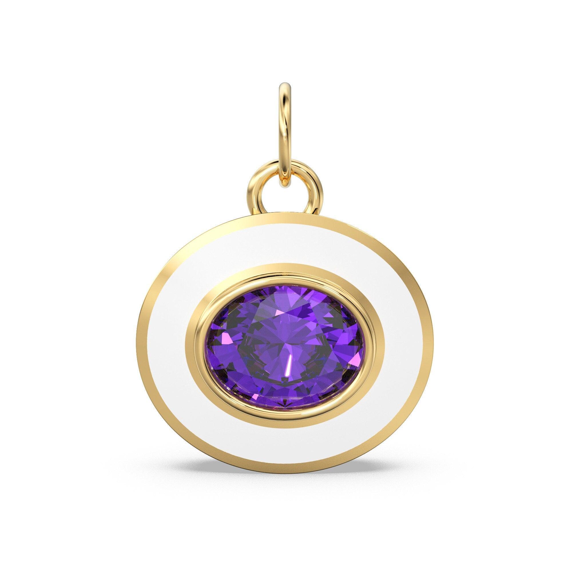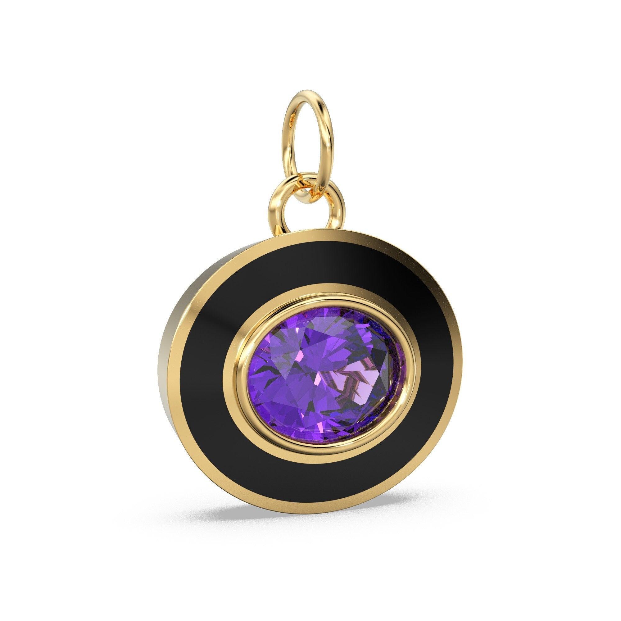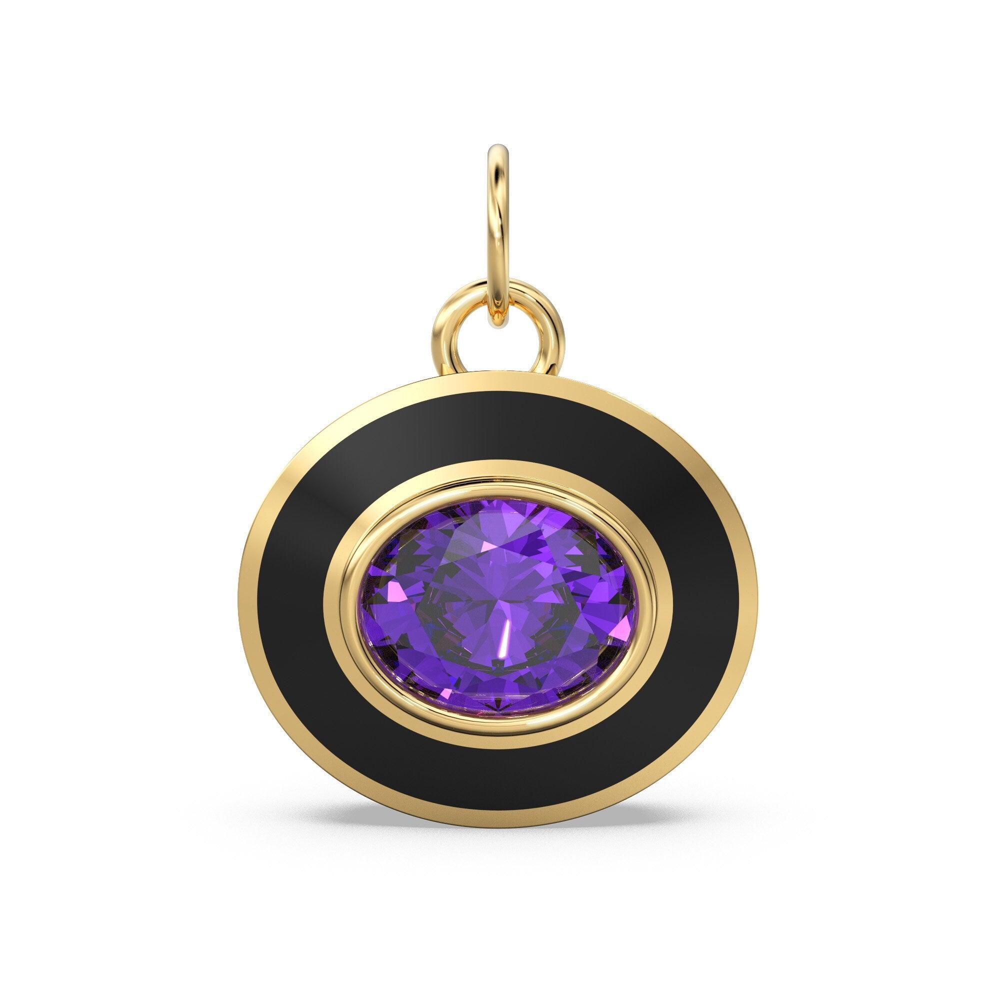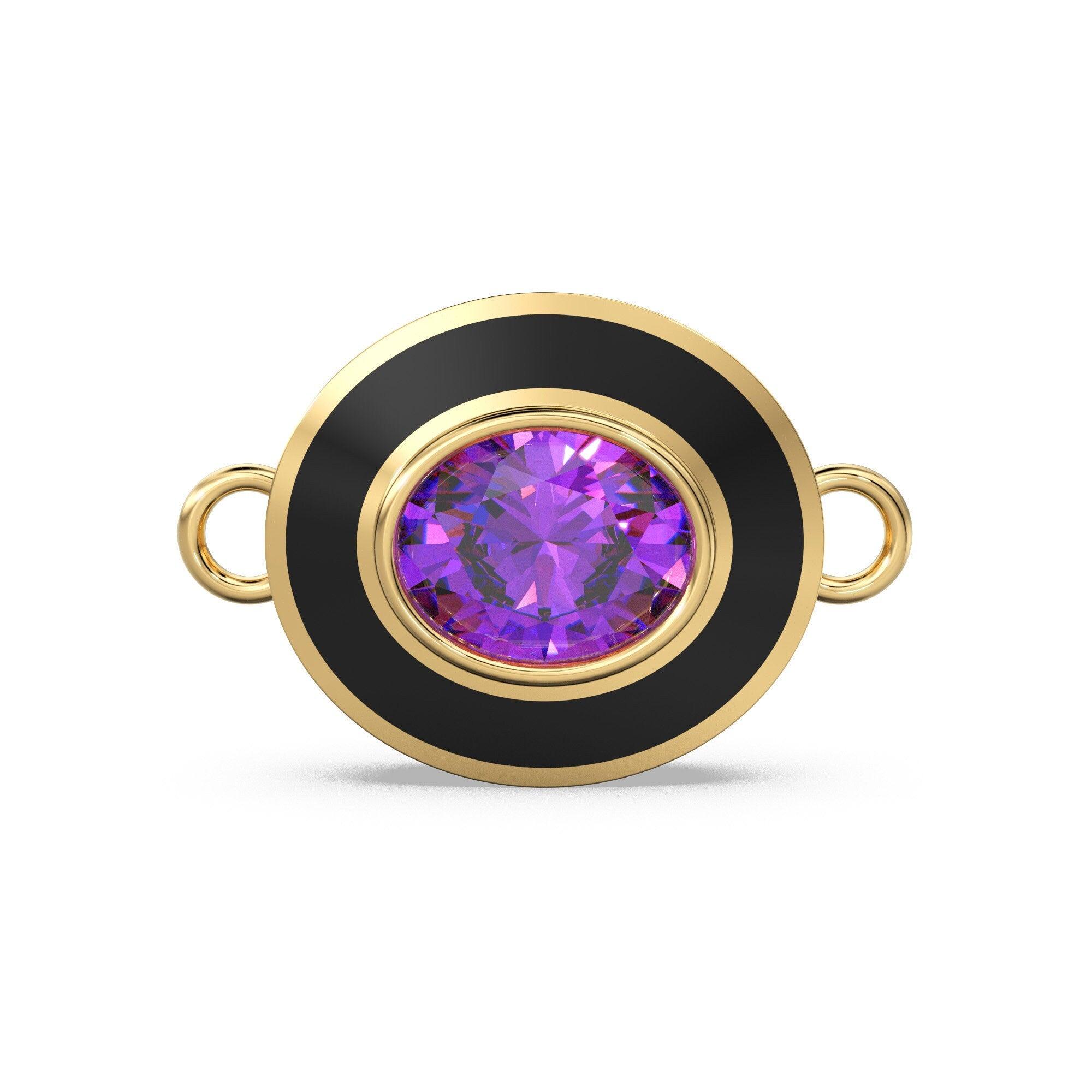 African Amethyst Oval Gemstone Enamel Pendant / Intricate Beautiful Jali Work On The Back / February Birthstone Charm or Connector