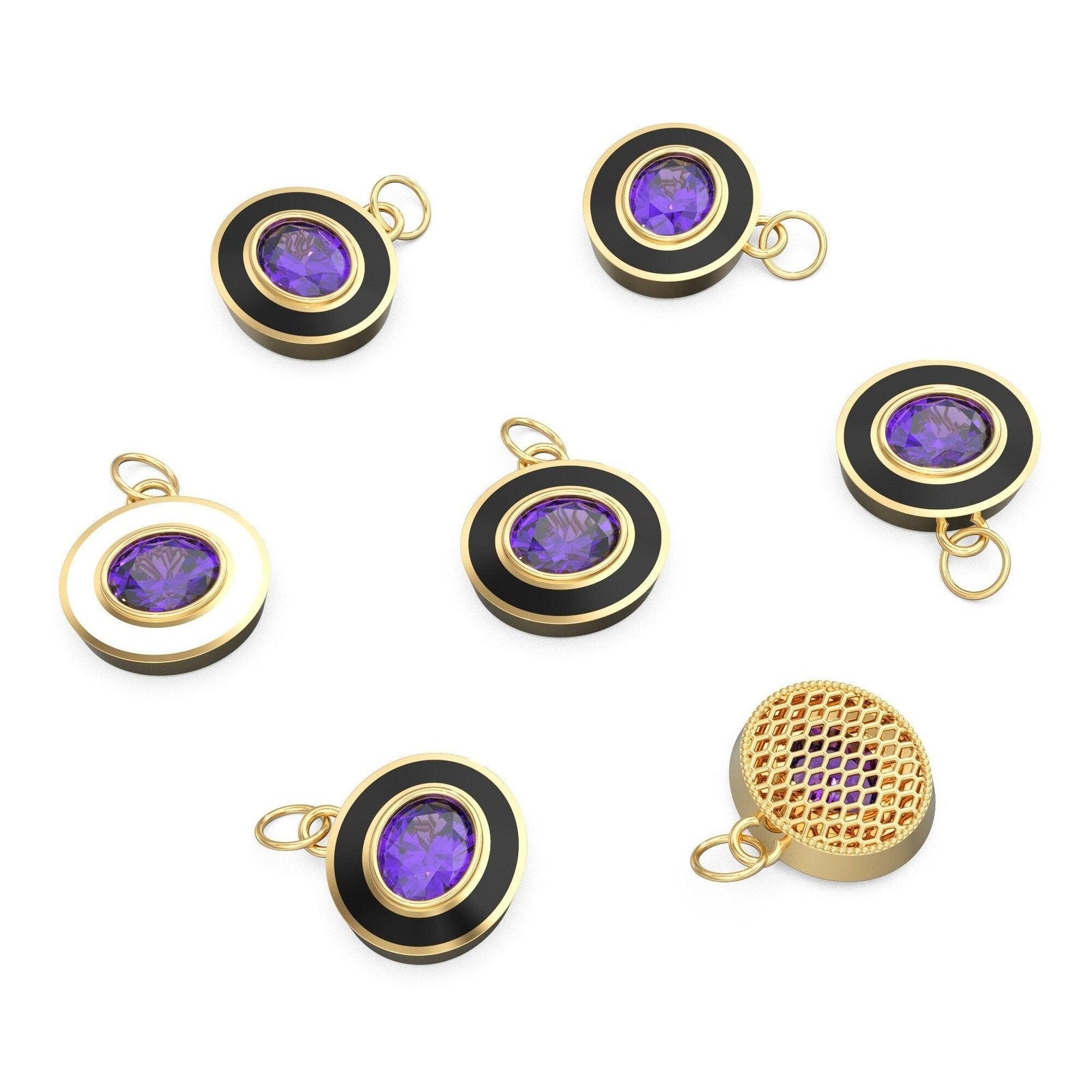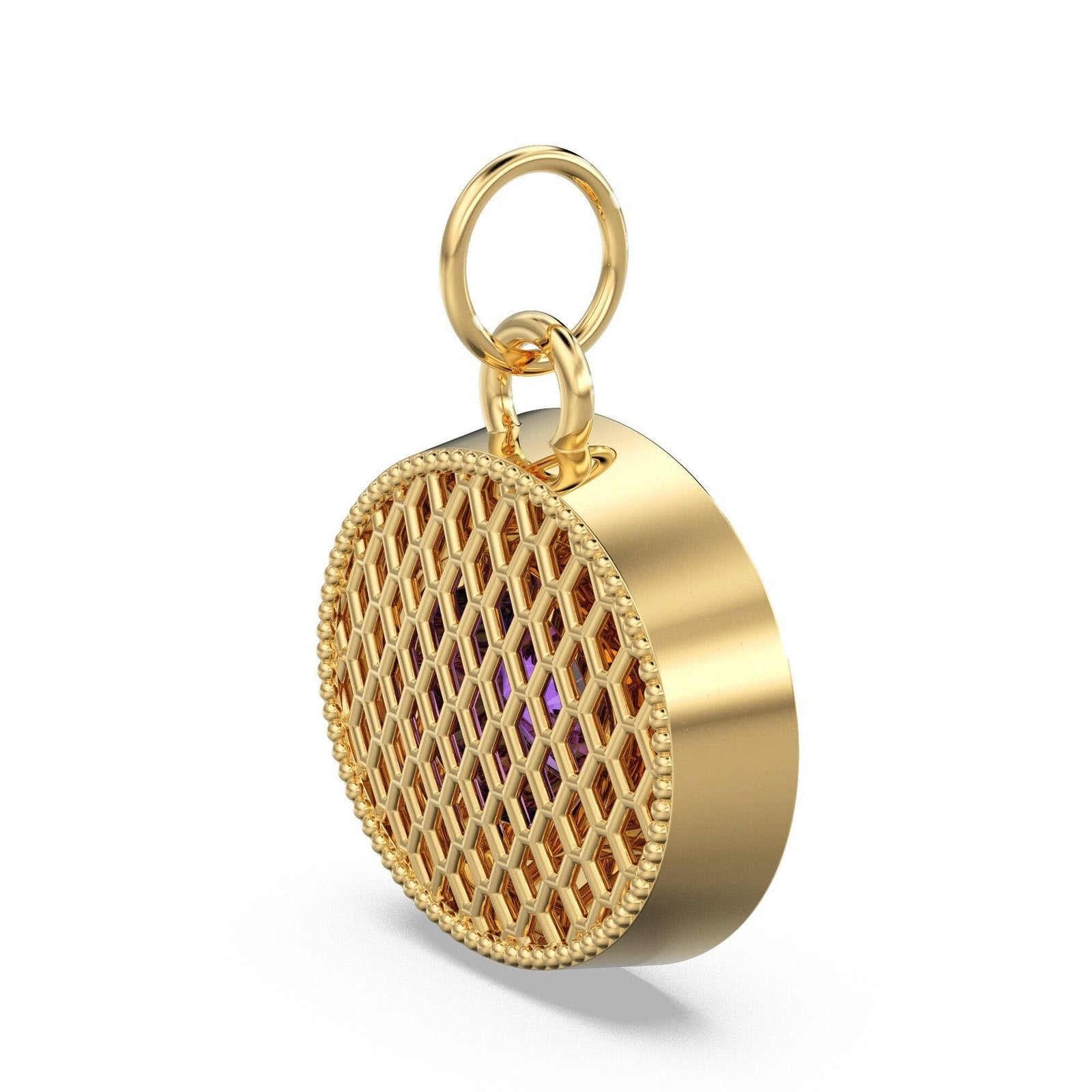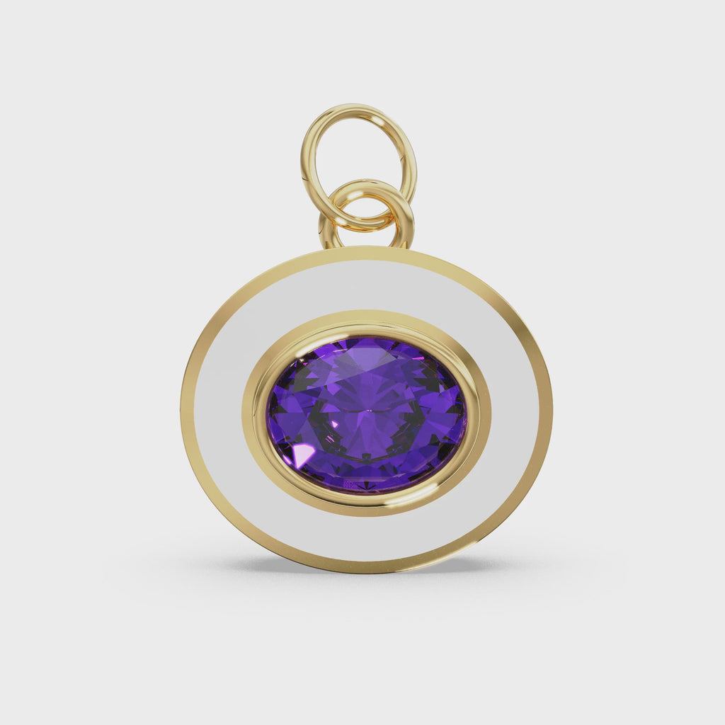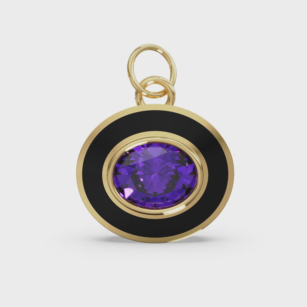 African Amethyst Oval Gemstone Enamel Pendant / Intricate Beautiful Jali Work On The Back / February Birthstone Charm or Connector