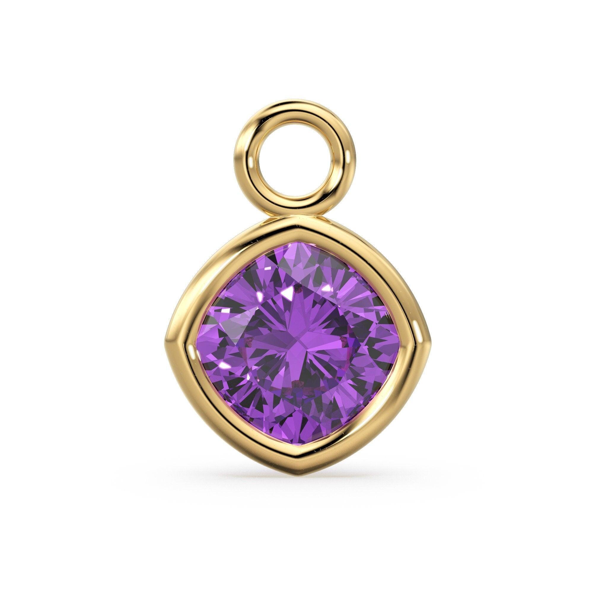 African Purple Amethyst Solid Gold Charm / Natural Gemstone Handmade Pendant / 1pc 14k Solid Yellow Gold Jewelry Making Findings