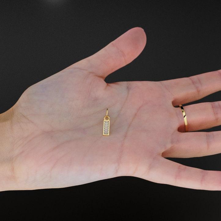 6 Baguette Diamond Bar Charm / 18k Solid Gold Diamond Pendant / Baguette Diamond 14k Gold Pendant / Petite Diamond Charm / Sale