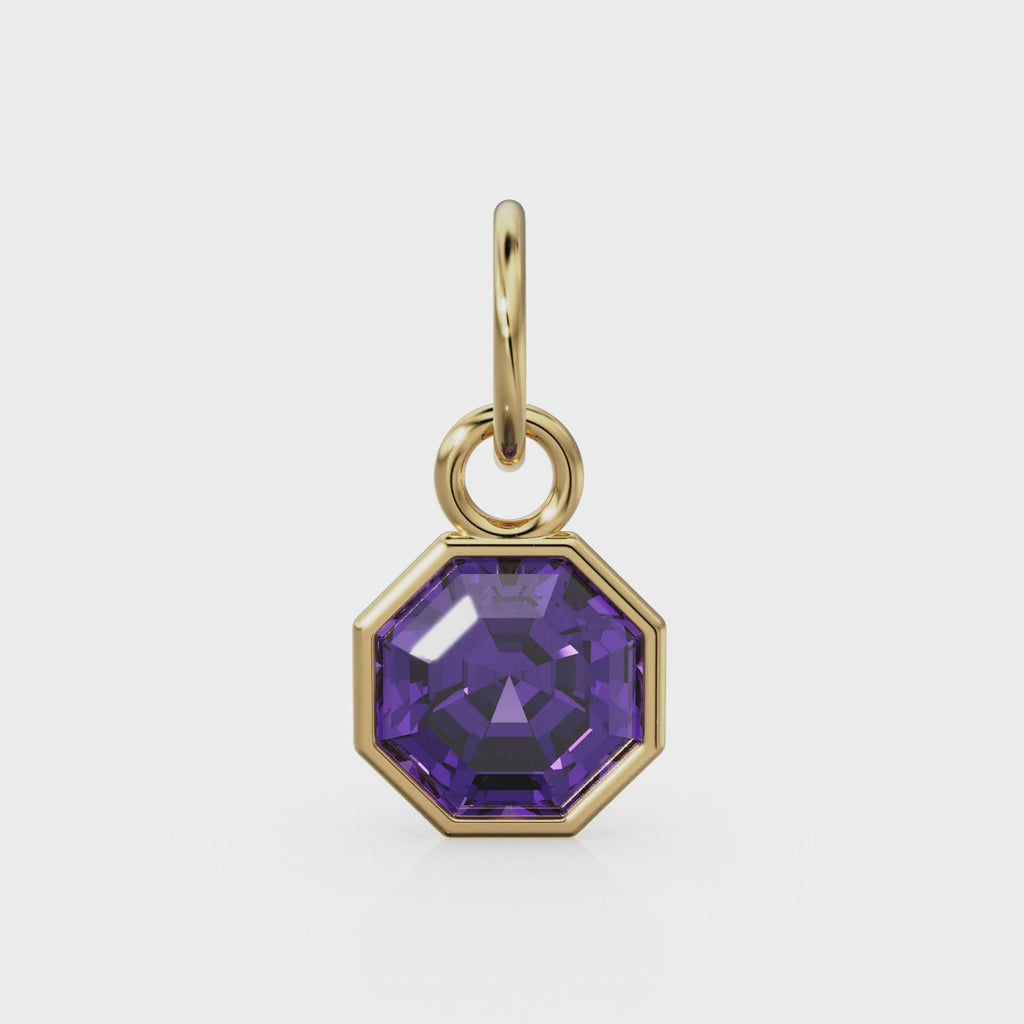 7mm 14k Yellow Solid Gold African Purple Amethyst Charm Pendant Bezel Jewelry Finding