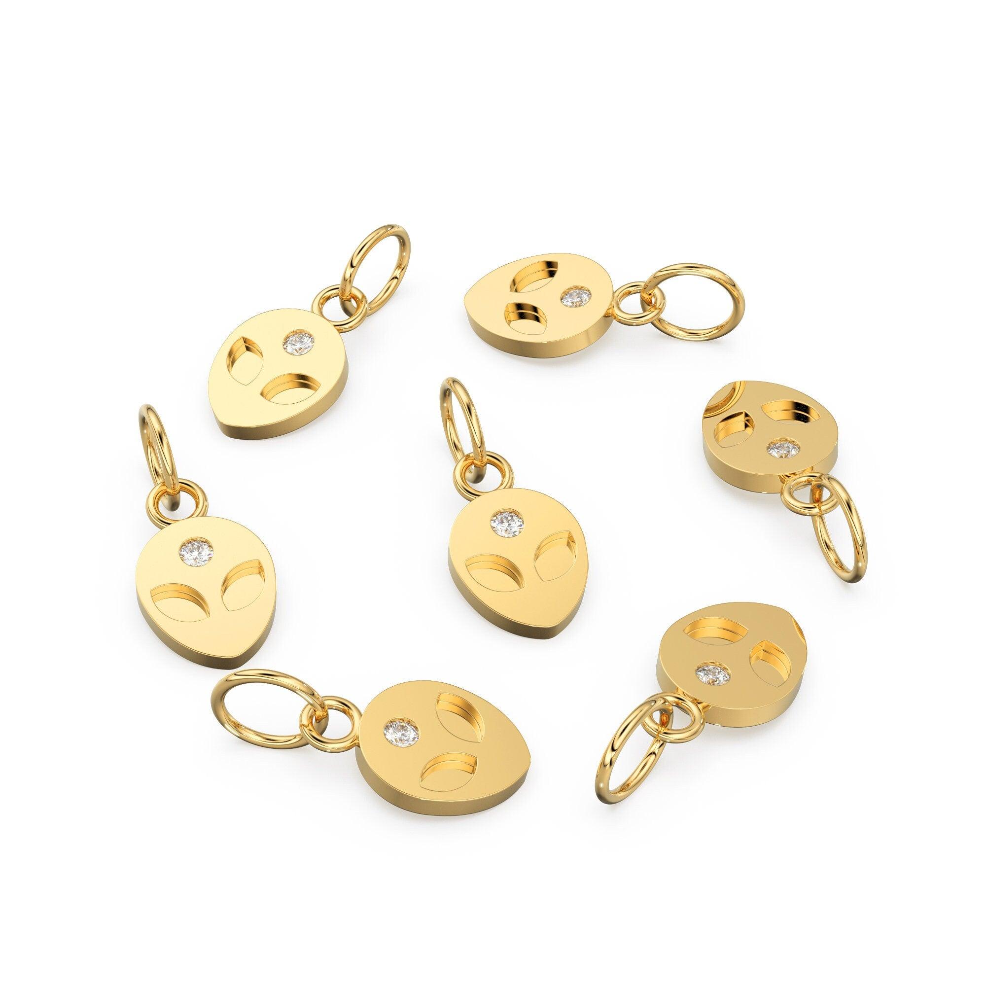 Thank you for coming in! 14k or 18k solid yellow gold Alien Head with diamond stuuded shape charm/pendant!