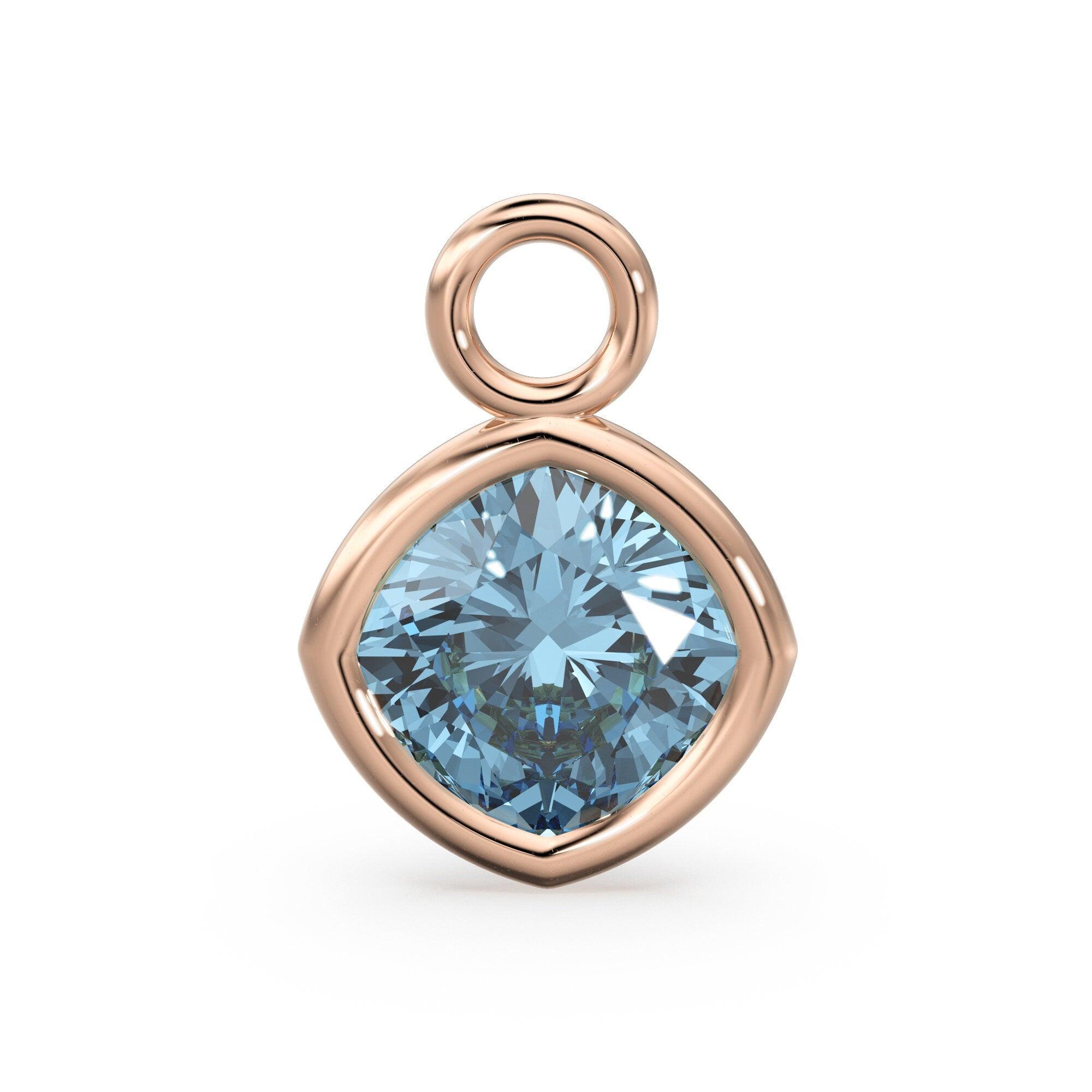 Aquamarine Solid Gold Charm / Blue Gemstone Handmade Pendant / 1pc 14k Solid Yellow Gold Jewelry Making / March BirthstoneSALE