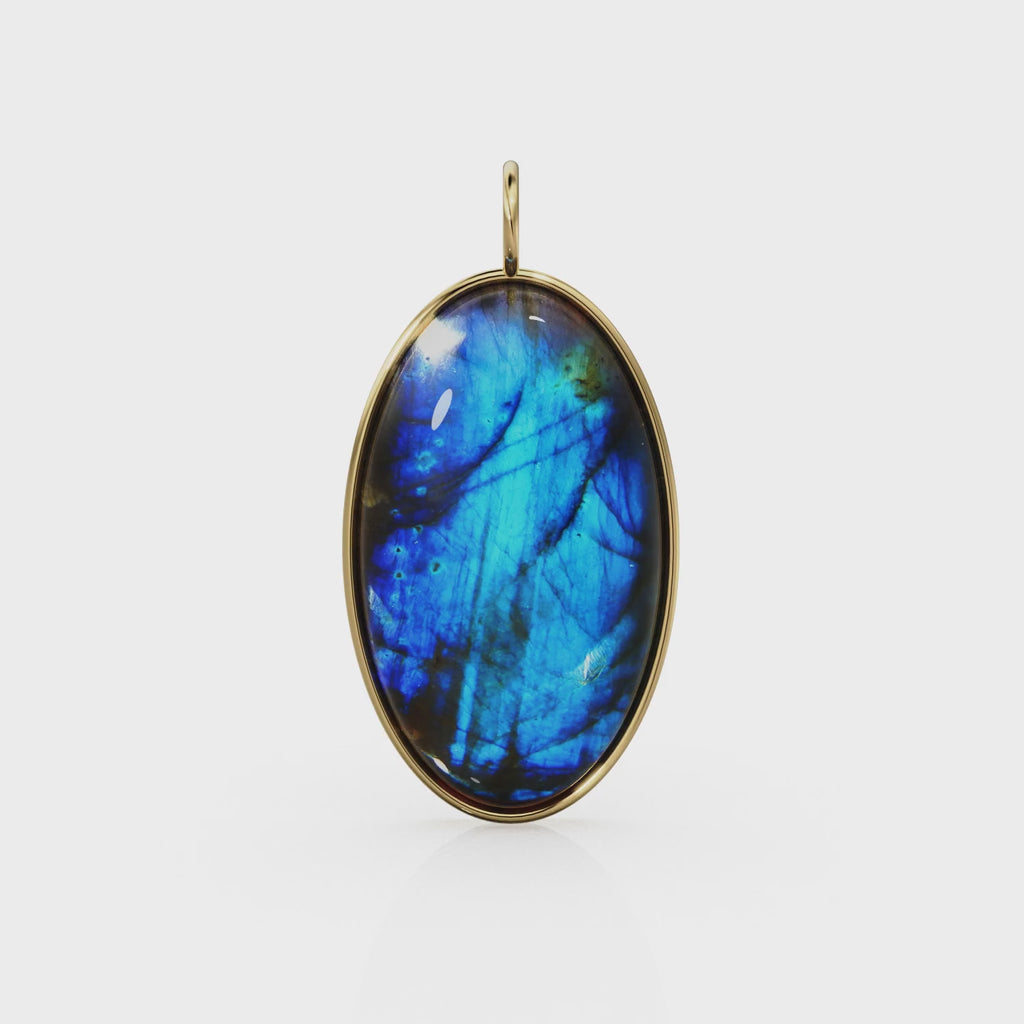 14k Yellow Gold Eye of the Peacock Labradorite Colette Pendant / Natural Blue Gemstone Handmade Gold Charm / 14k Yellow Gold Jewelry Finding
