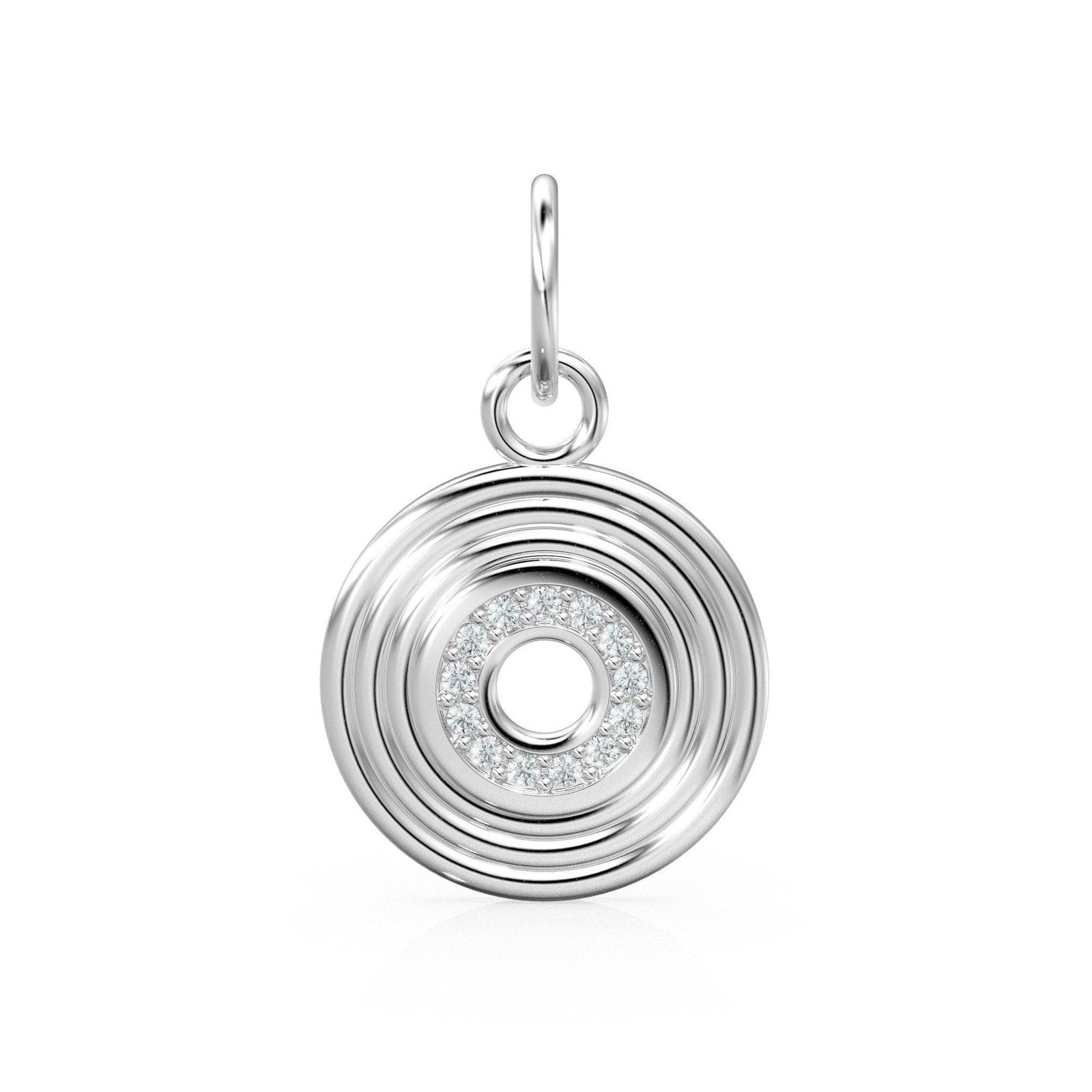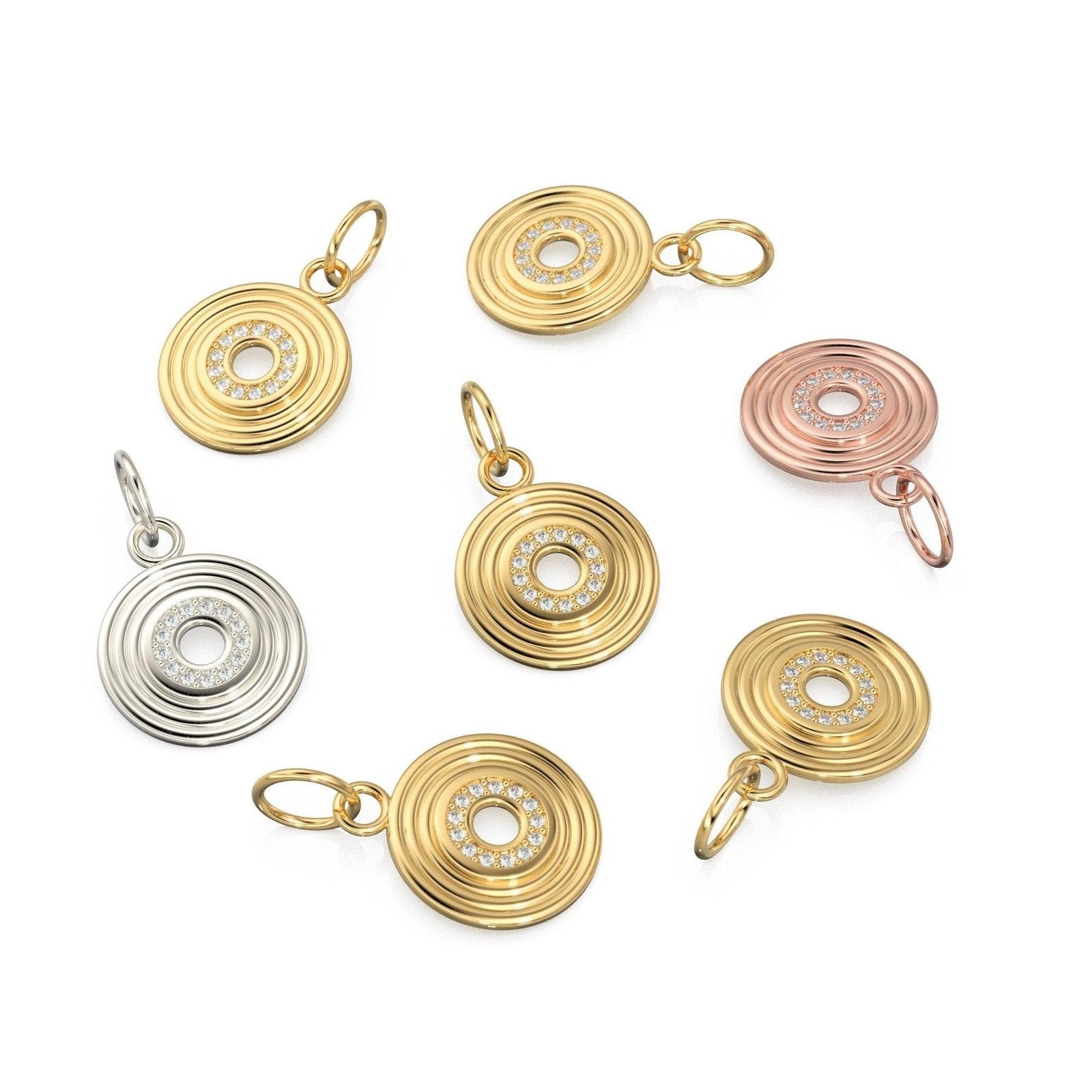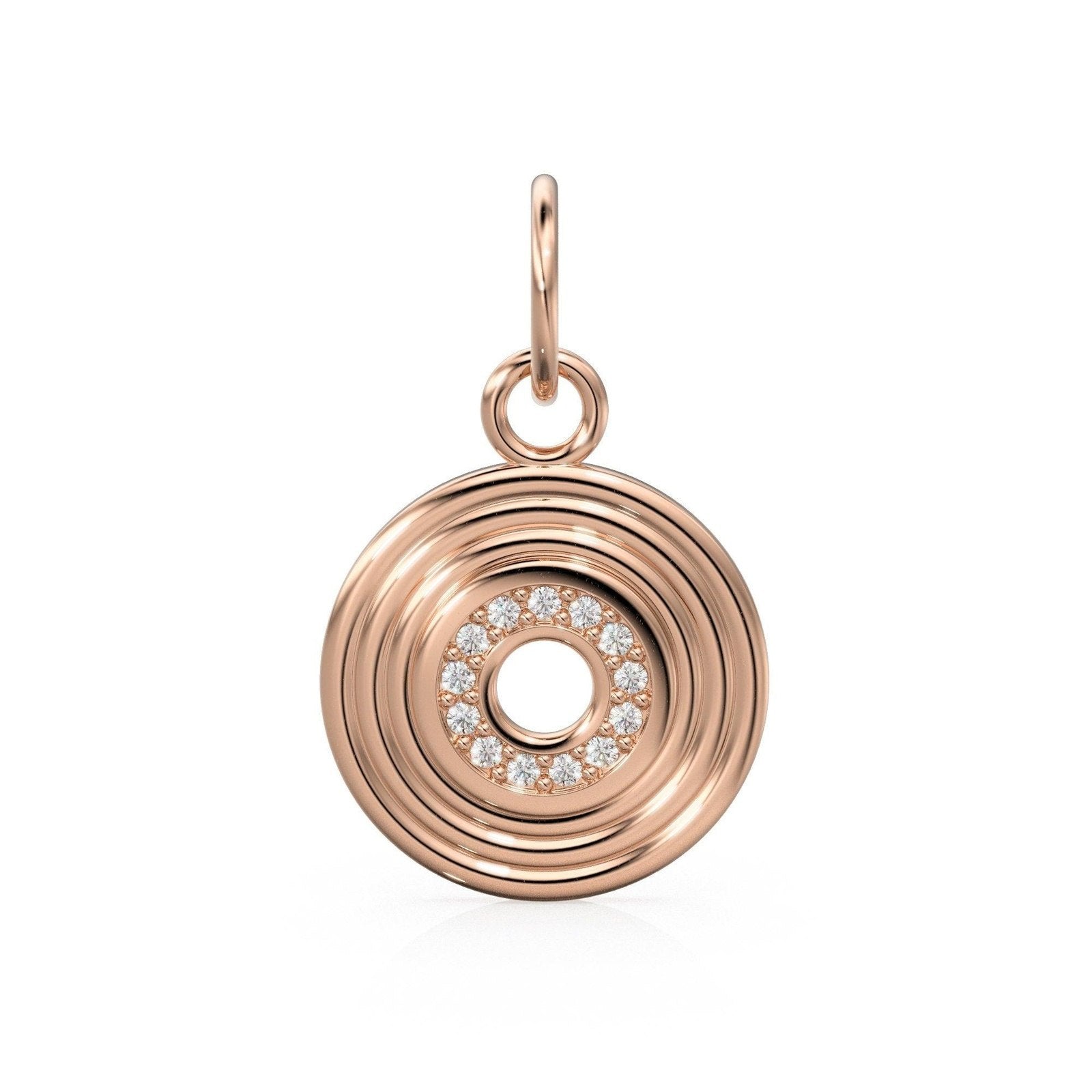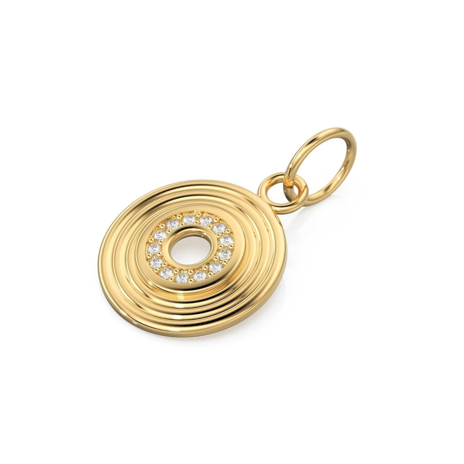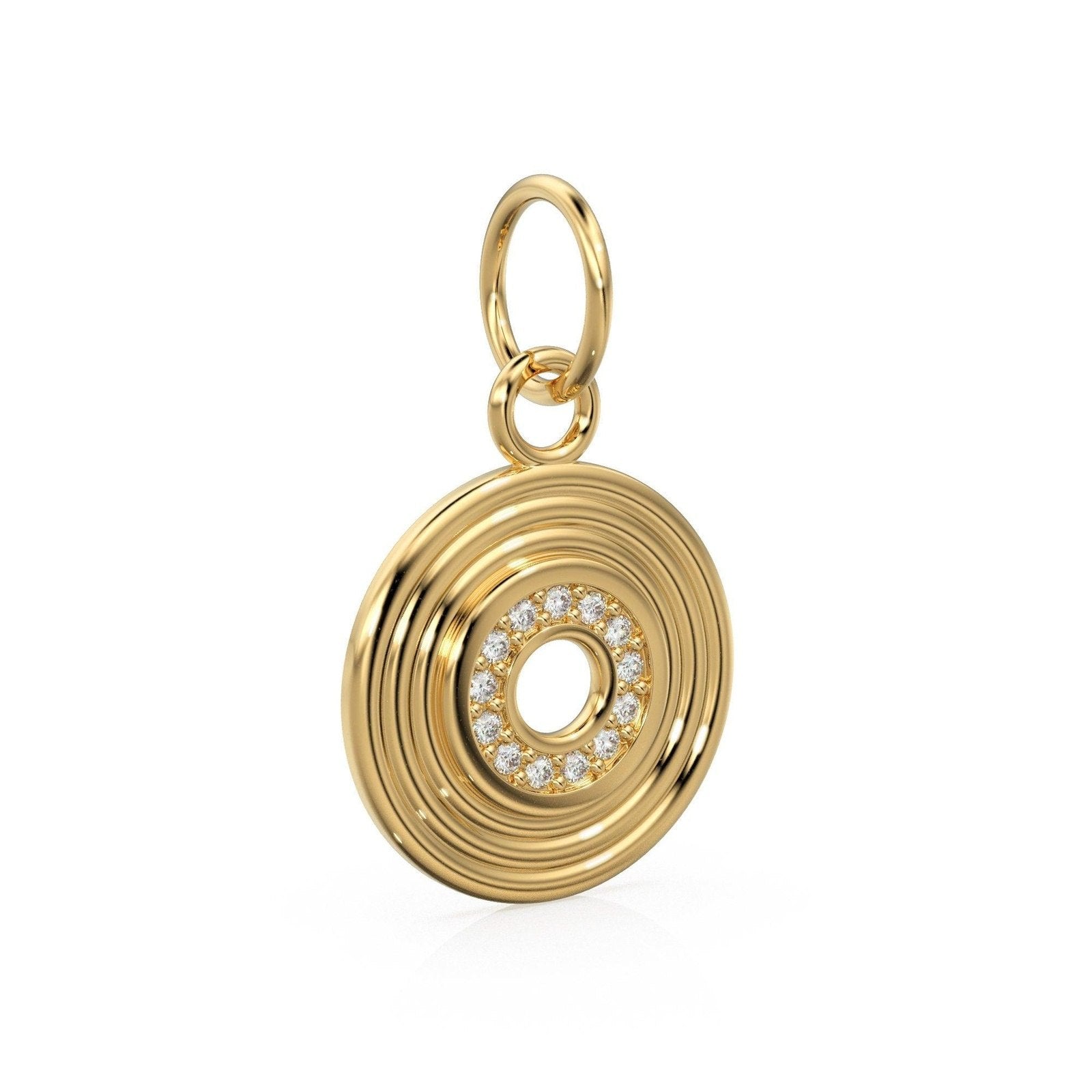 18k Solid Gold Diamond Round Halo Charm / Petite Dainty Brilliant Round Diamond Charm Pendant / Diamond Gold Pendant / Sale