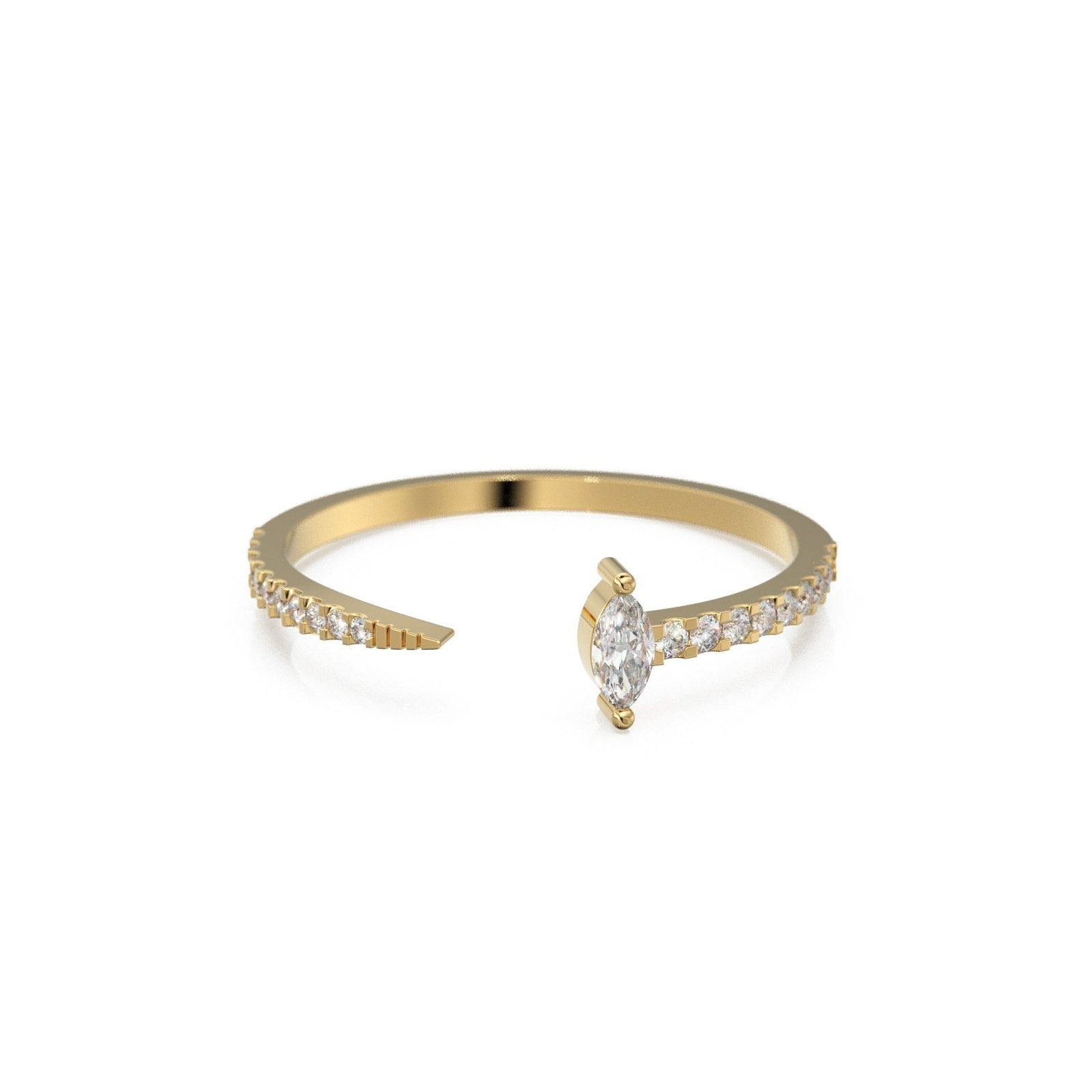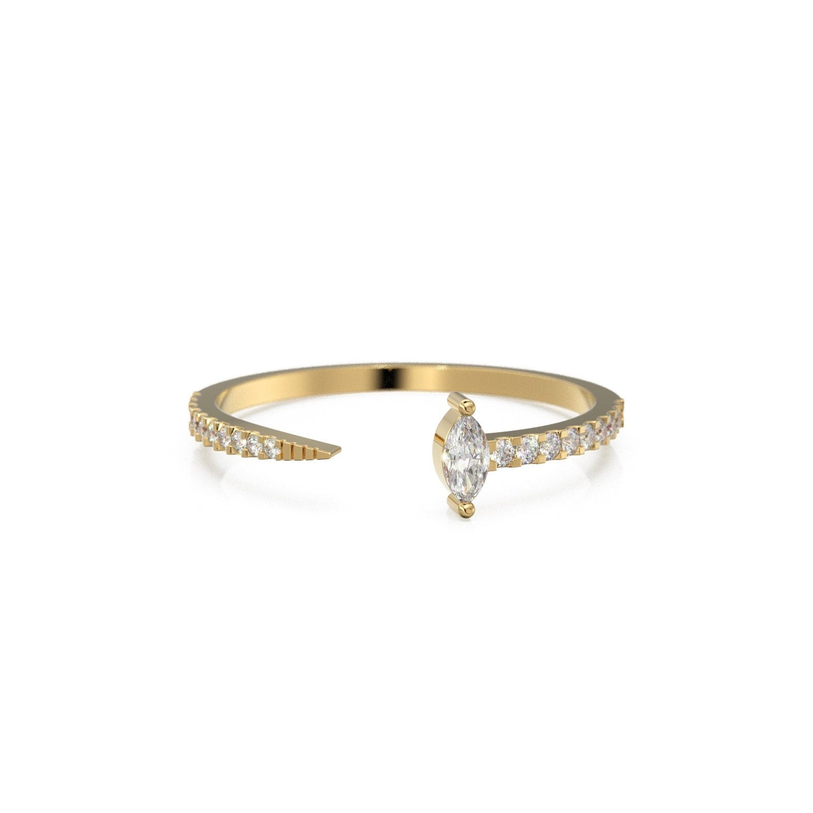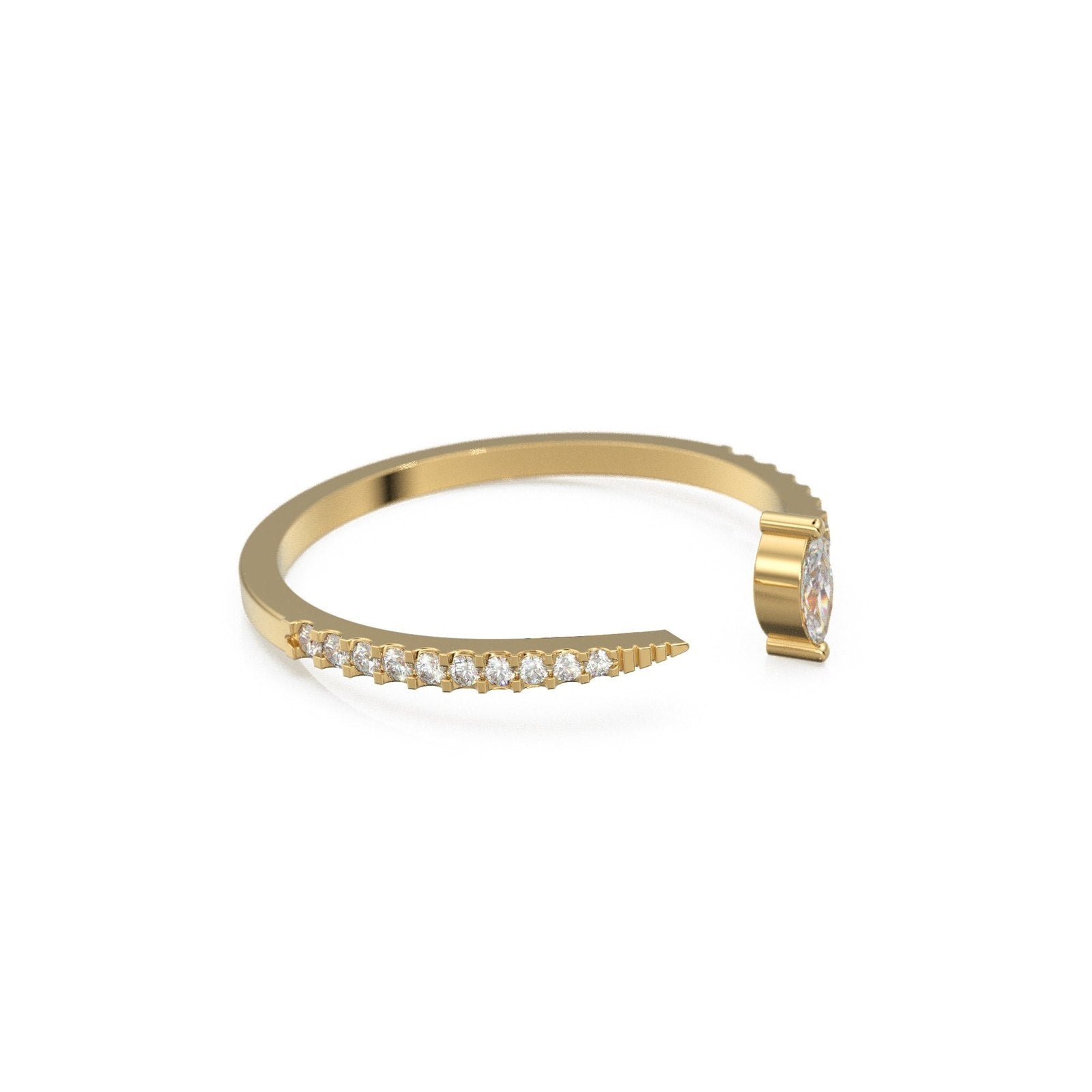 Stackable Ring / 14k Gold Pave Diamond Open Cuff Claw Diamond Ring / Minimal Dainty Stacking Diamond Ring