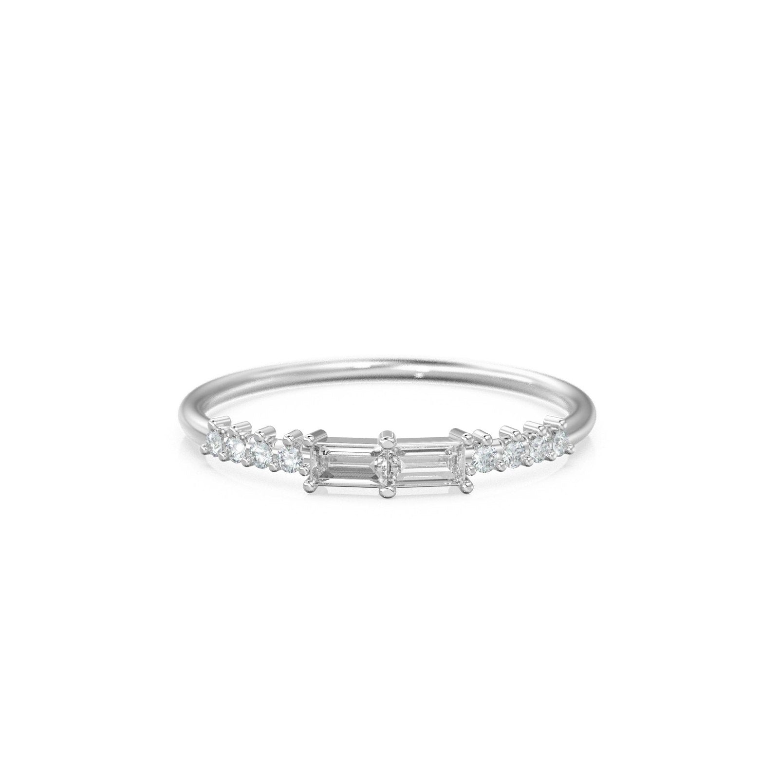 Baguette Ring / 14k Gold Baguette Diamond Stacking Ring / Rose Gold Baguette Ring / Minimalist Baguette Ring / Double Baguette Ring