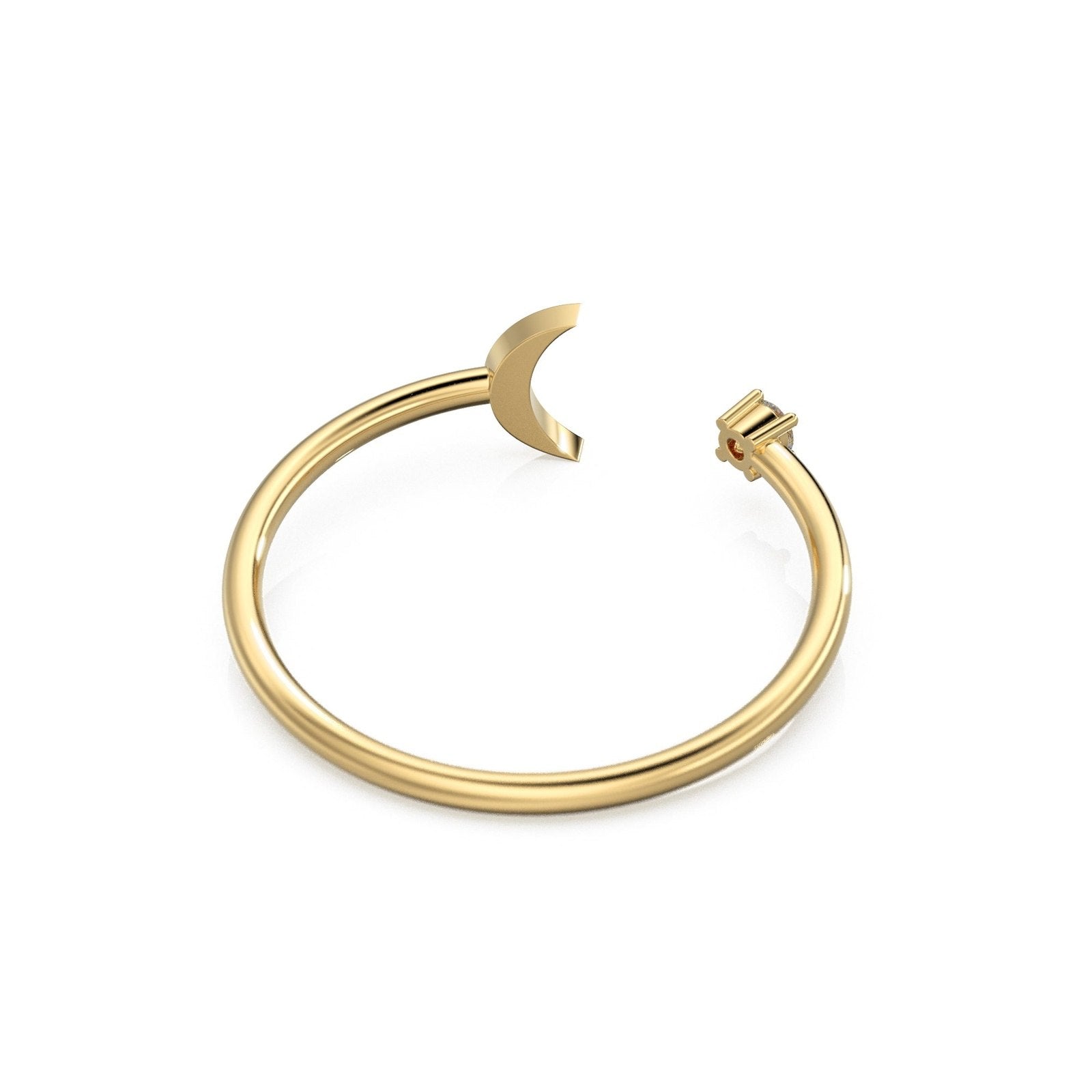 Star & Moon Diamond Band in 14k Gold / Star Brilliant Diamond Ring / Gold Band White Diamond Ring / Genuine Diamond Wedding Band