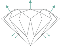 Diamonds are exceptionally good at slowing down light, splitting it, and shows a shimmering spectrum of colors. As white light enters the stone's table, it refracts and bends from the mirror-like facets in limitless directions, regaining speed.