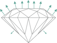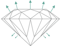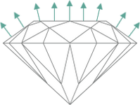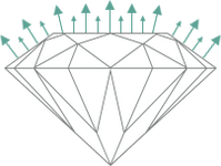Vice Versa, if a diamond is cut even a few degrees out of proportion it can leak the light outside the bottom of diamond rather than reflect it back up towards the table (front face of the diamond), a phenomenon also known as light leakage. The leak of light makes diamond with poor light performance, dull looking and faint brilliance and also a dark table / center of the diamond that hides its natural sparkle and potential.