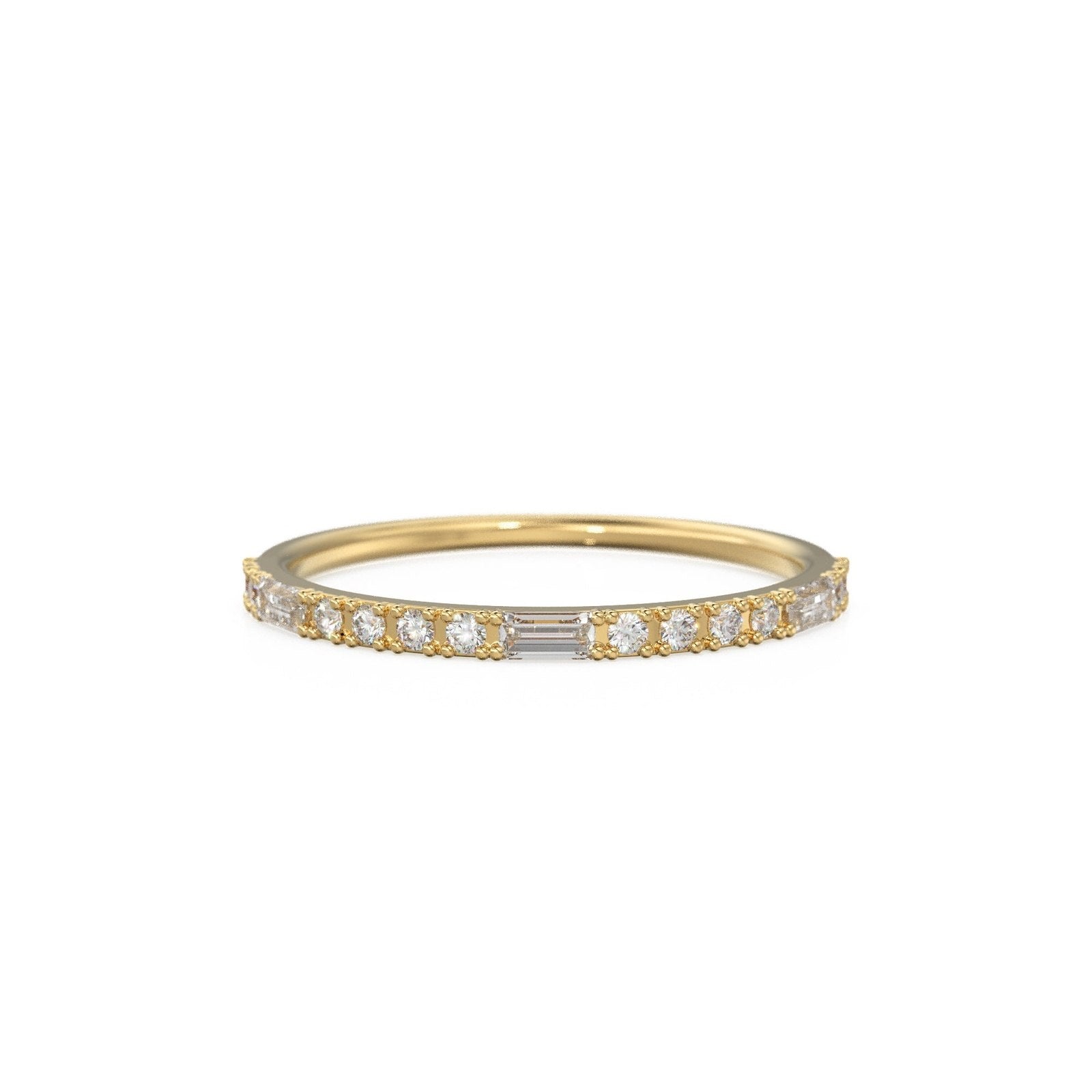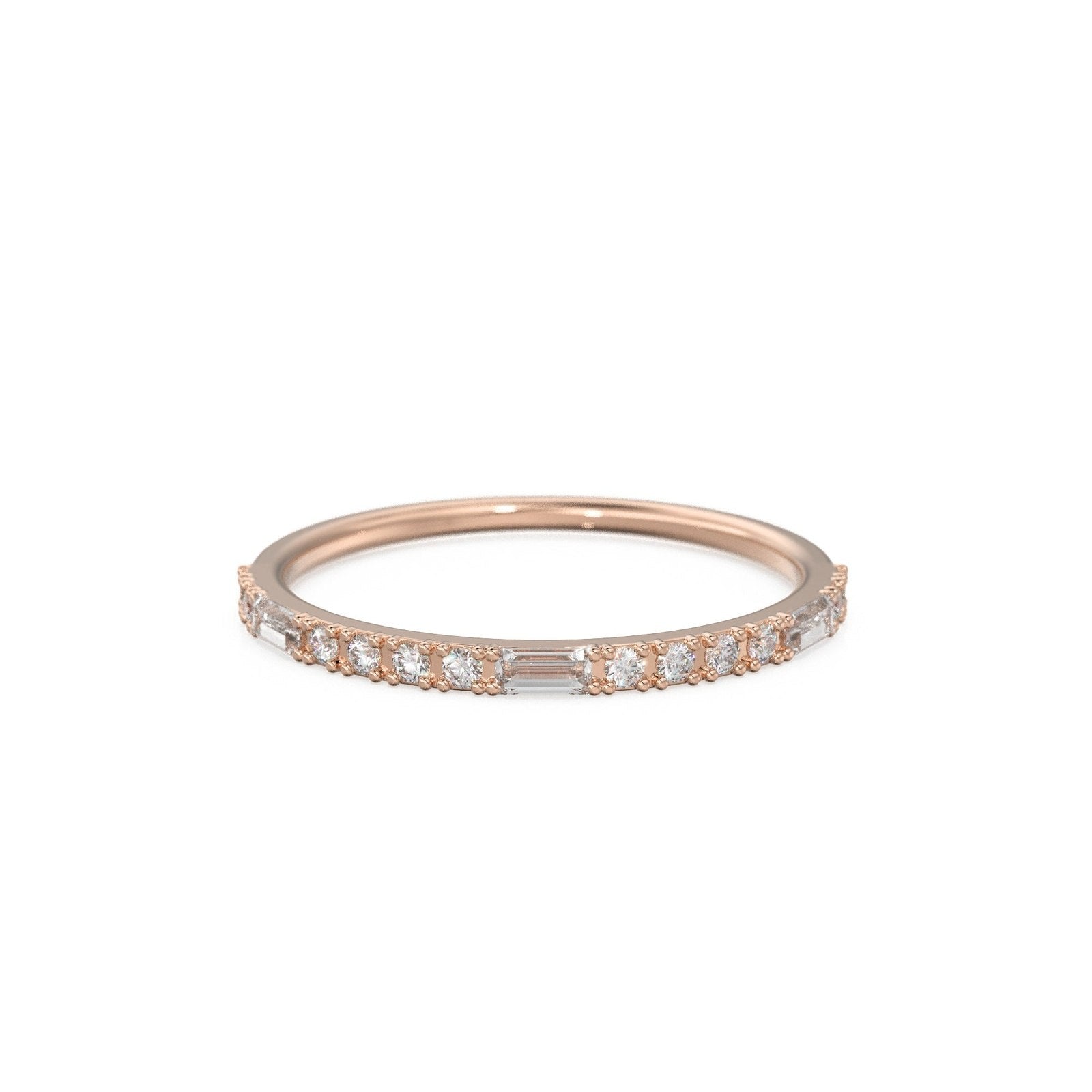 14k Gold Alternating Baguette Diamond and Round Diamond Full Eternity Ring / Available in Rose Gold and White Gold