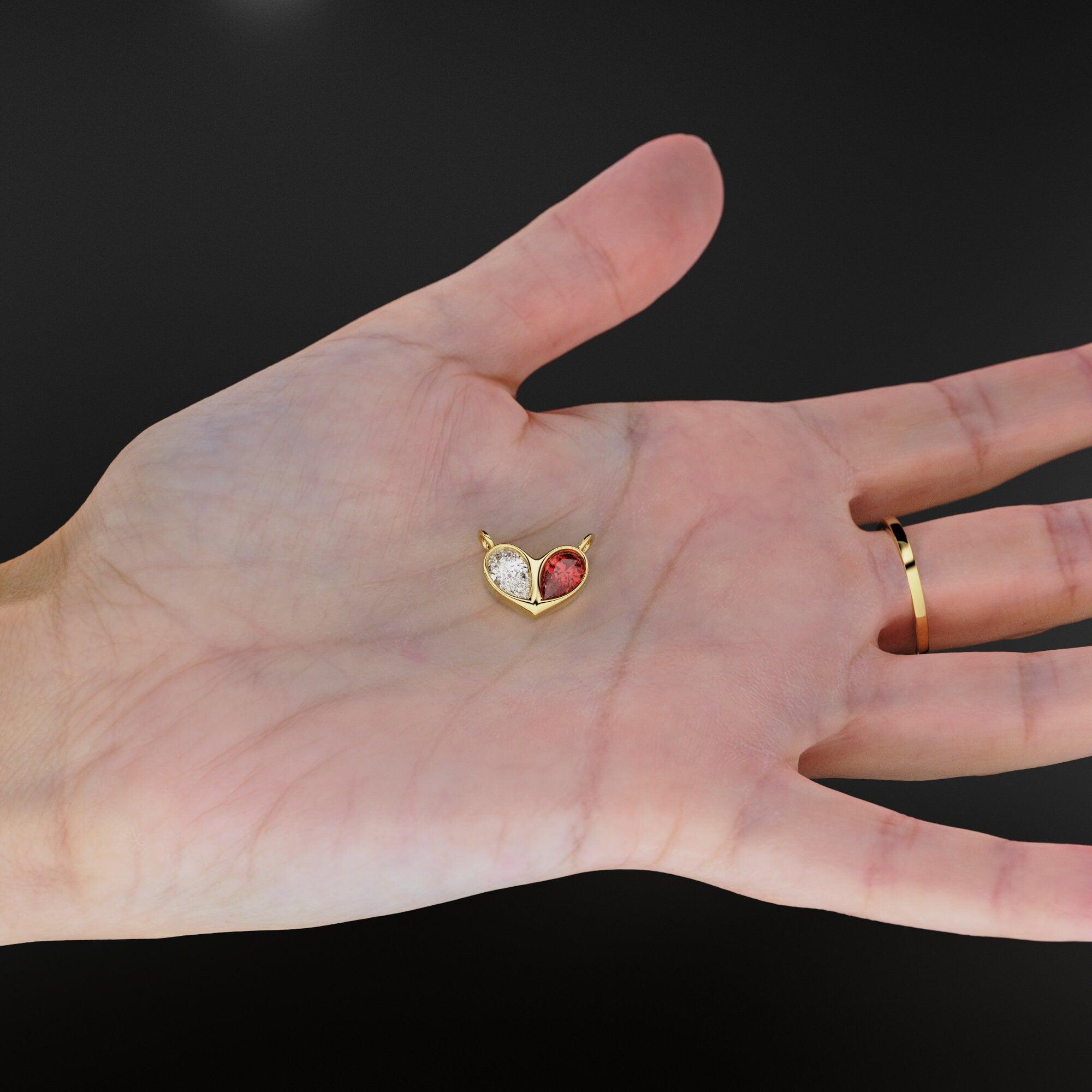 0.70ct Jumbo Sweetheart Ruby Diamond Heart Solid Gold Pendant Gift for him or her / Love Charm