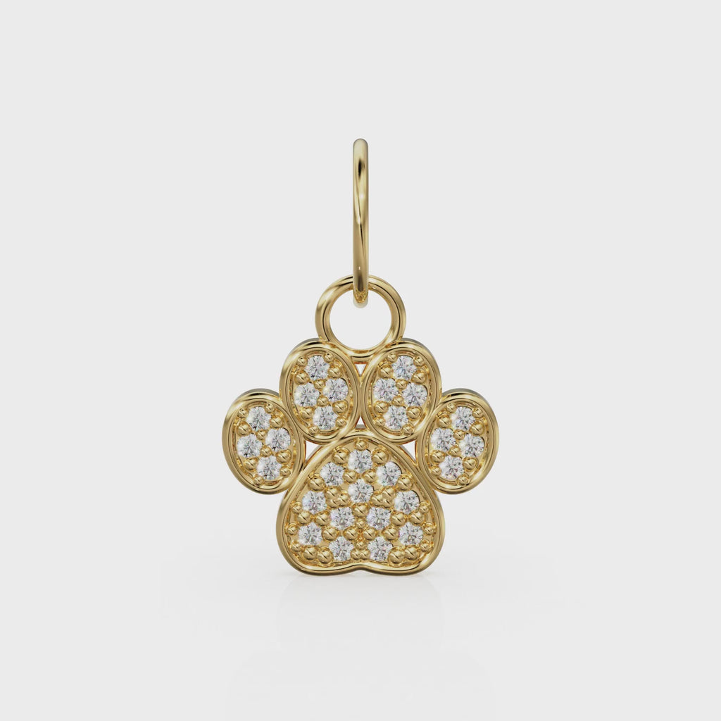 Thank you for coming in! 14k or 18k solid yellow gold Dog's Paw with diamond stuuded shape charm/pendant!