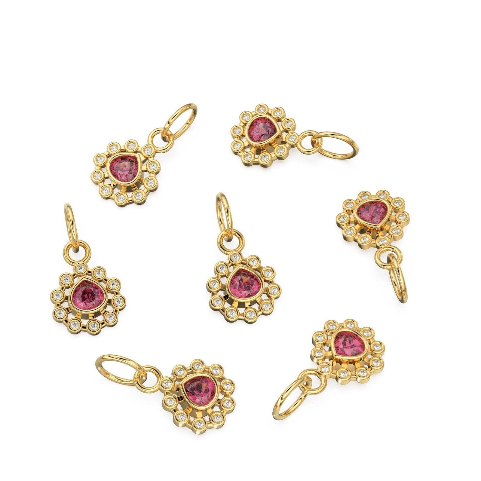 14k 18k Solid Gold Brilliant Heart Rhodolite Garnet & Genuine Diamond Solid Gold Charm Pendant / Garnet Pendant / Garnet Charm