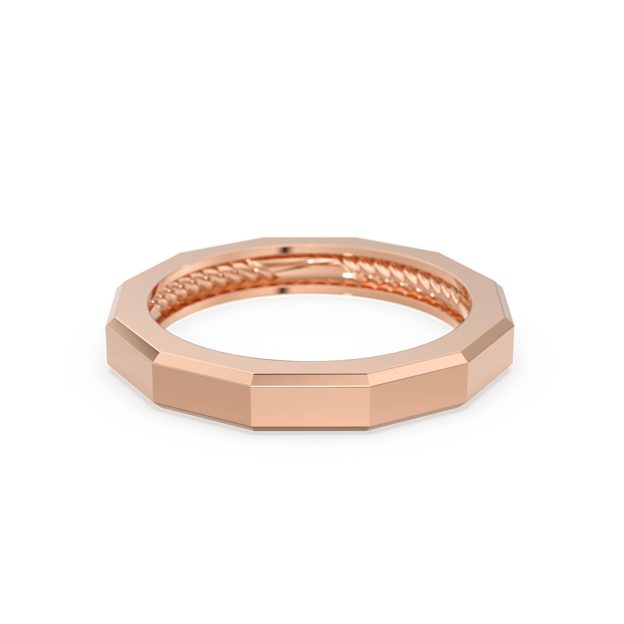 14k Solid Gold Geometric Designer Ring - Stackable Ring - Rope Inlay Narrow Band - Minimal Jewelry