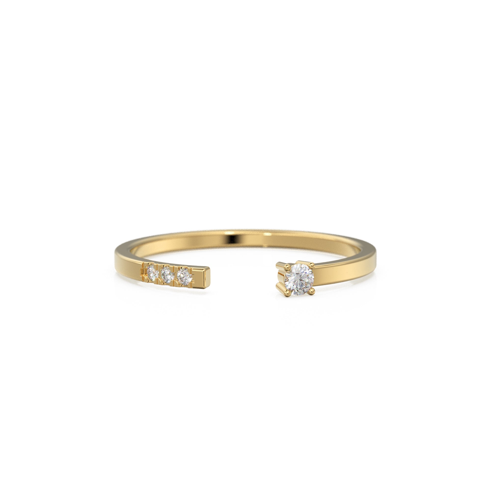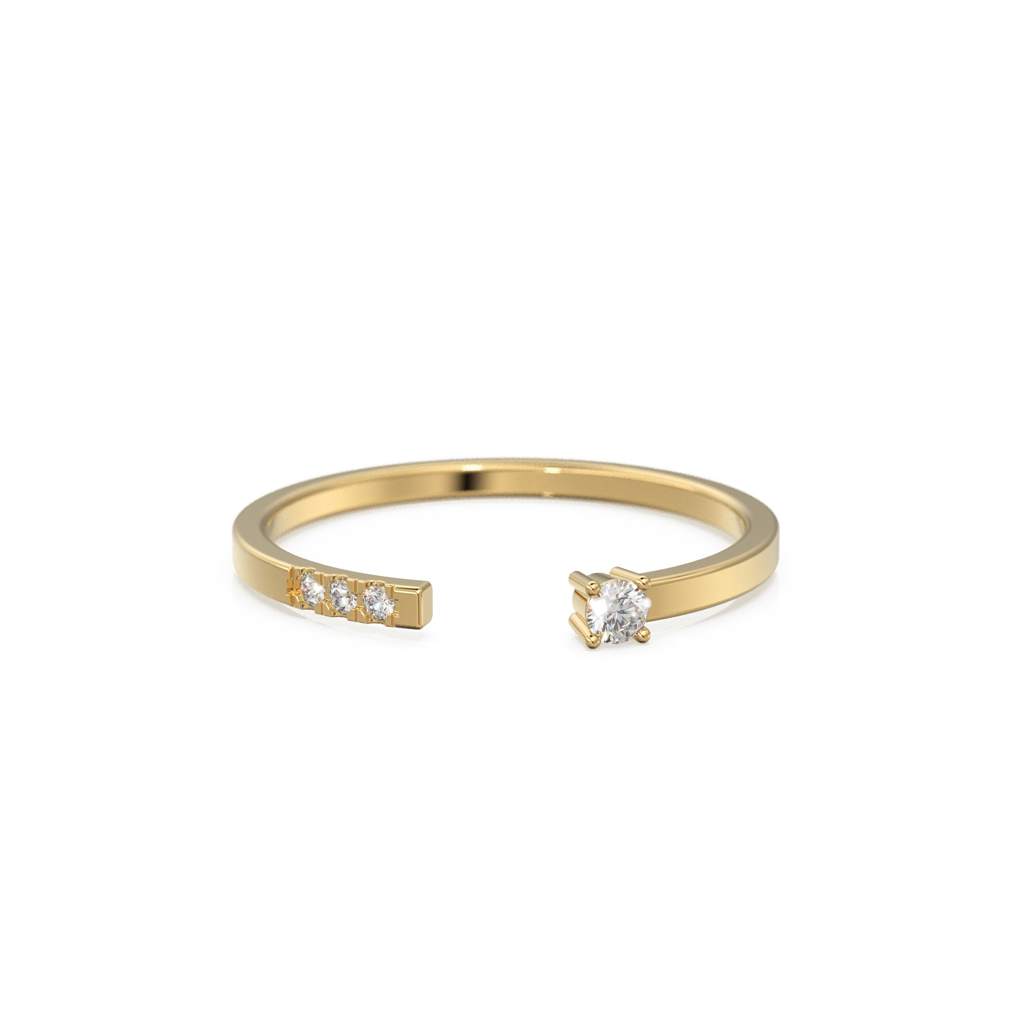 14k Gold Pave Diamond Open Cuff Diamond Ring / Open Design Stackable Ring / Minimal 3 Stone Dainty Stacking Diamond Ring