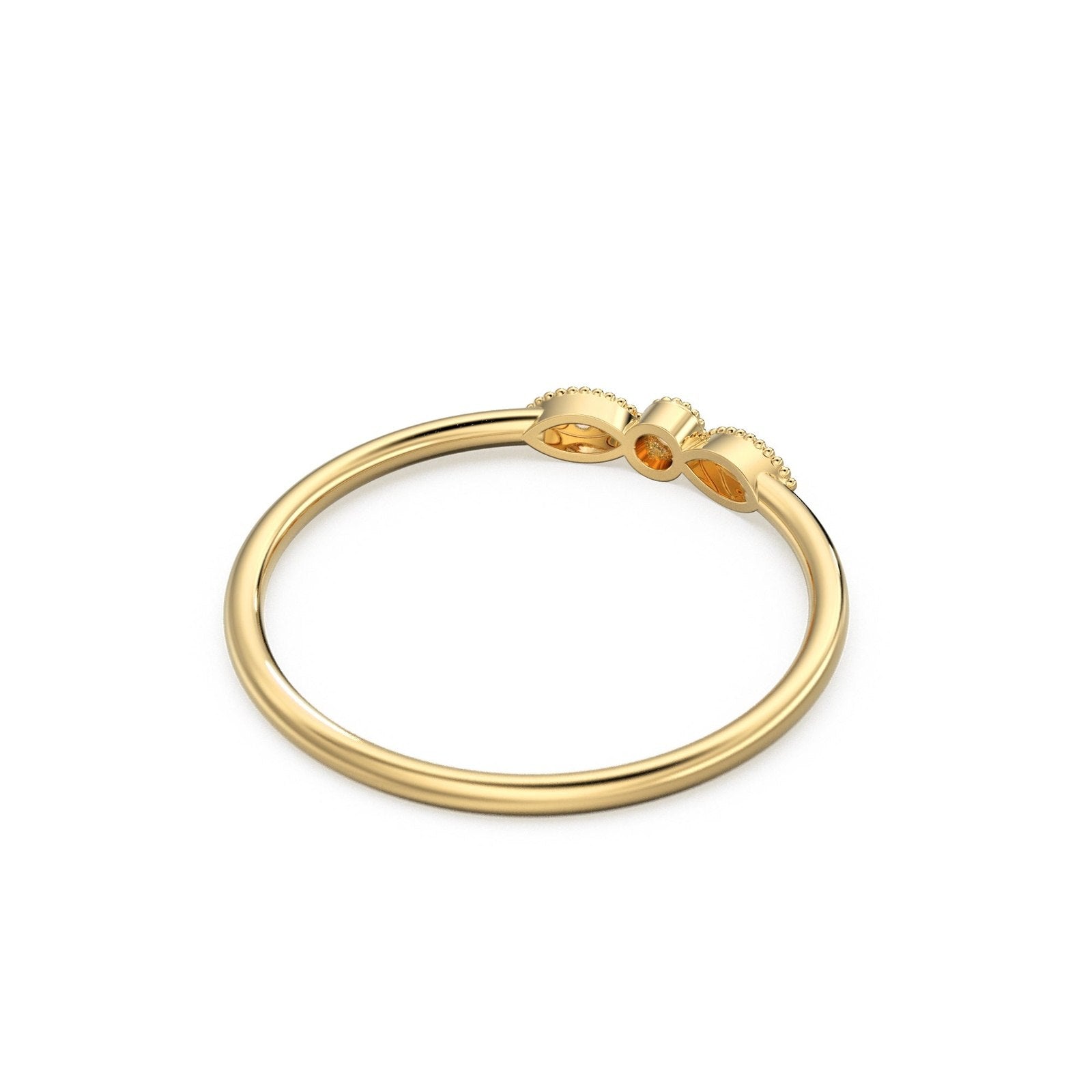3 Stone Diamond Ring / Milgrain Gold Wedding Band / Rosette Leaf Gold Ring / Flower Leaf Motif Wedding Ring