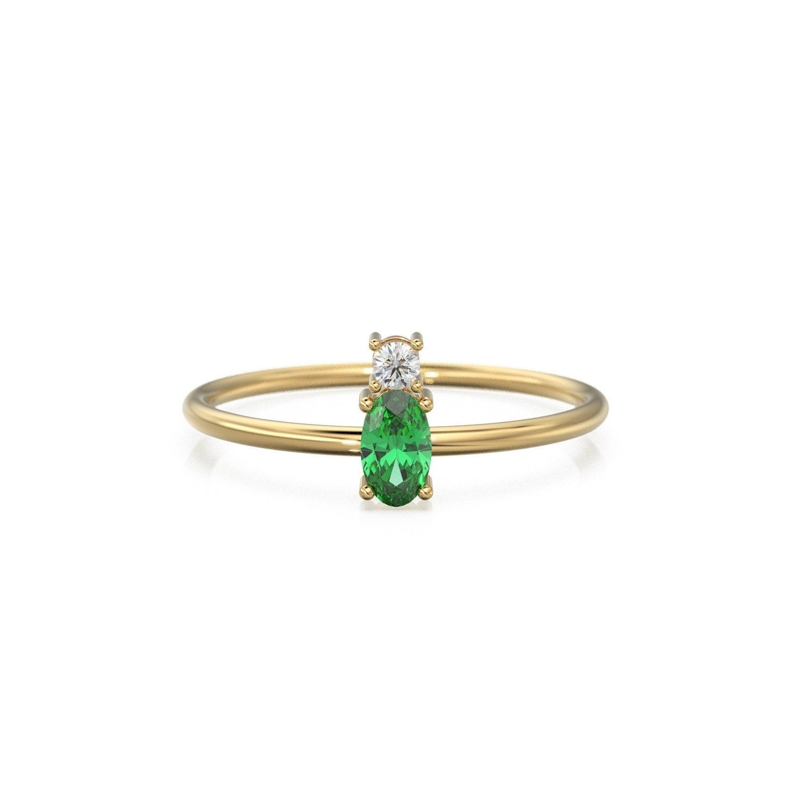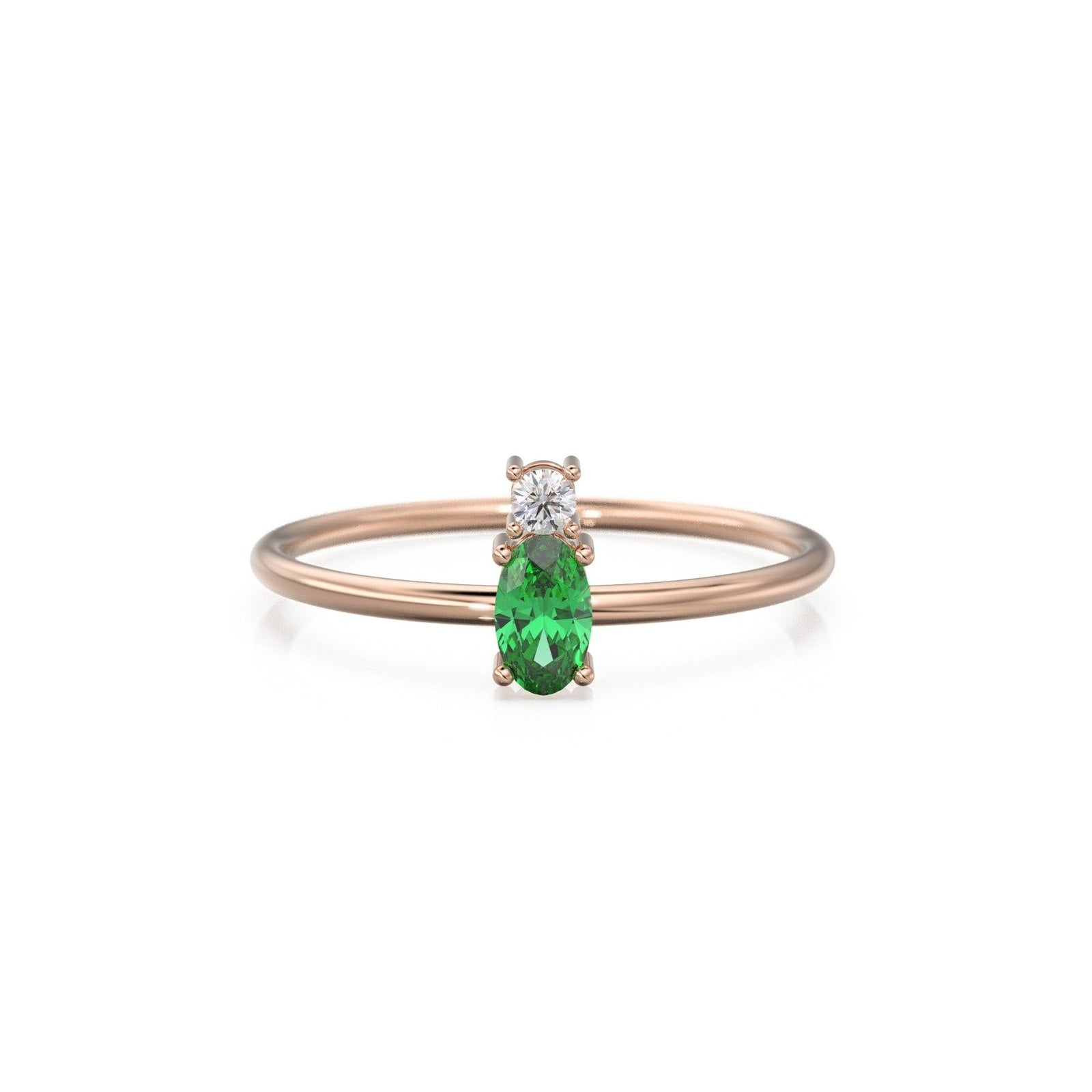 Emerald Ring / Emerald Engagement Ring in 14k Gold / Oval Cut Natural 2 Stone Emerald Diamond Ring / May Birthstone / Promise Ring
