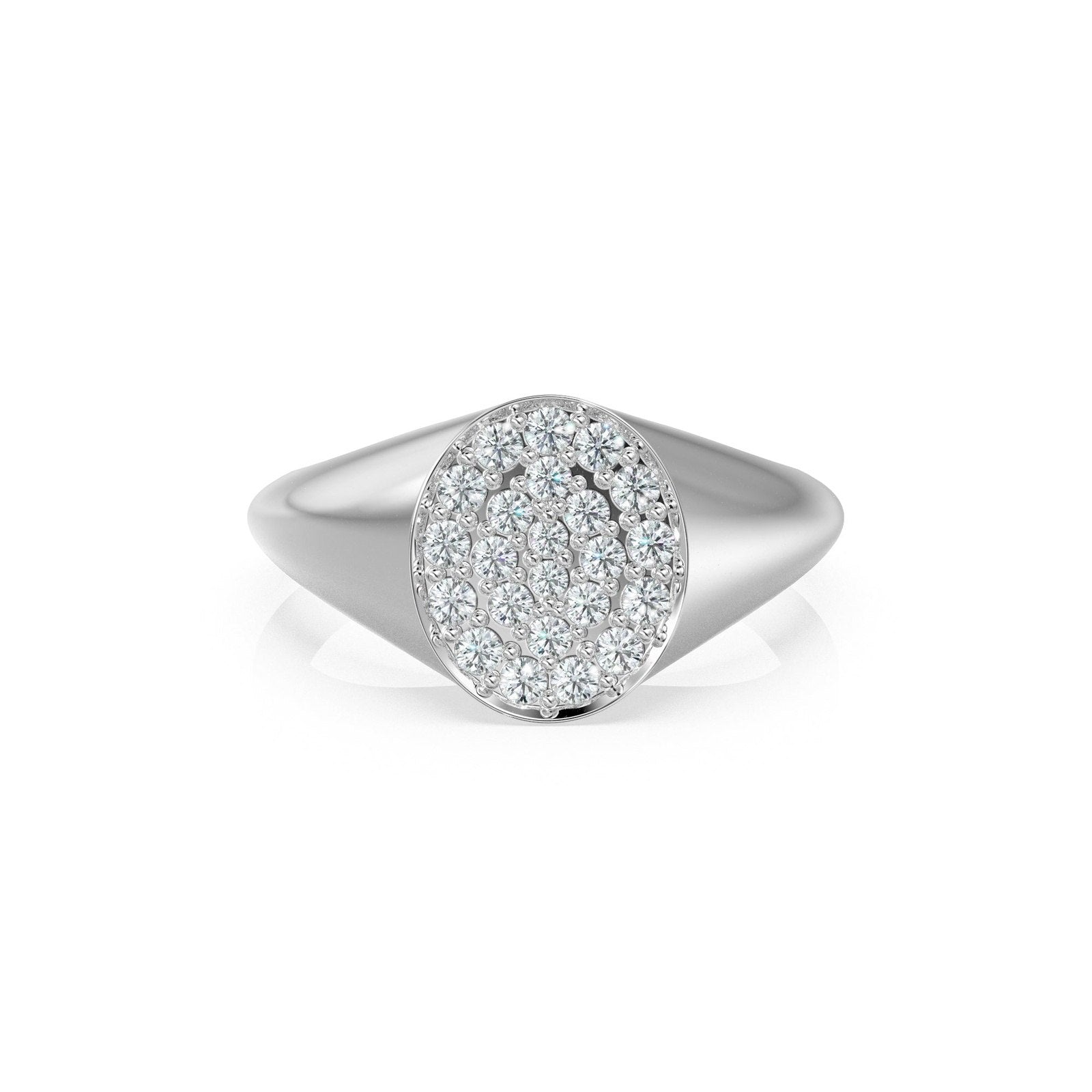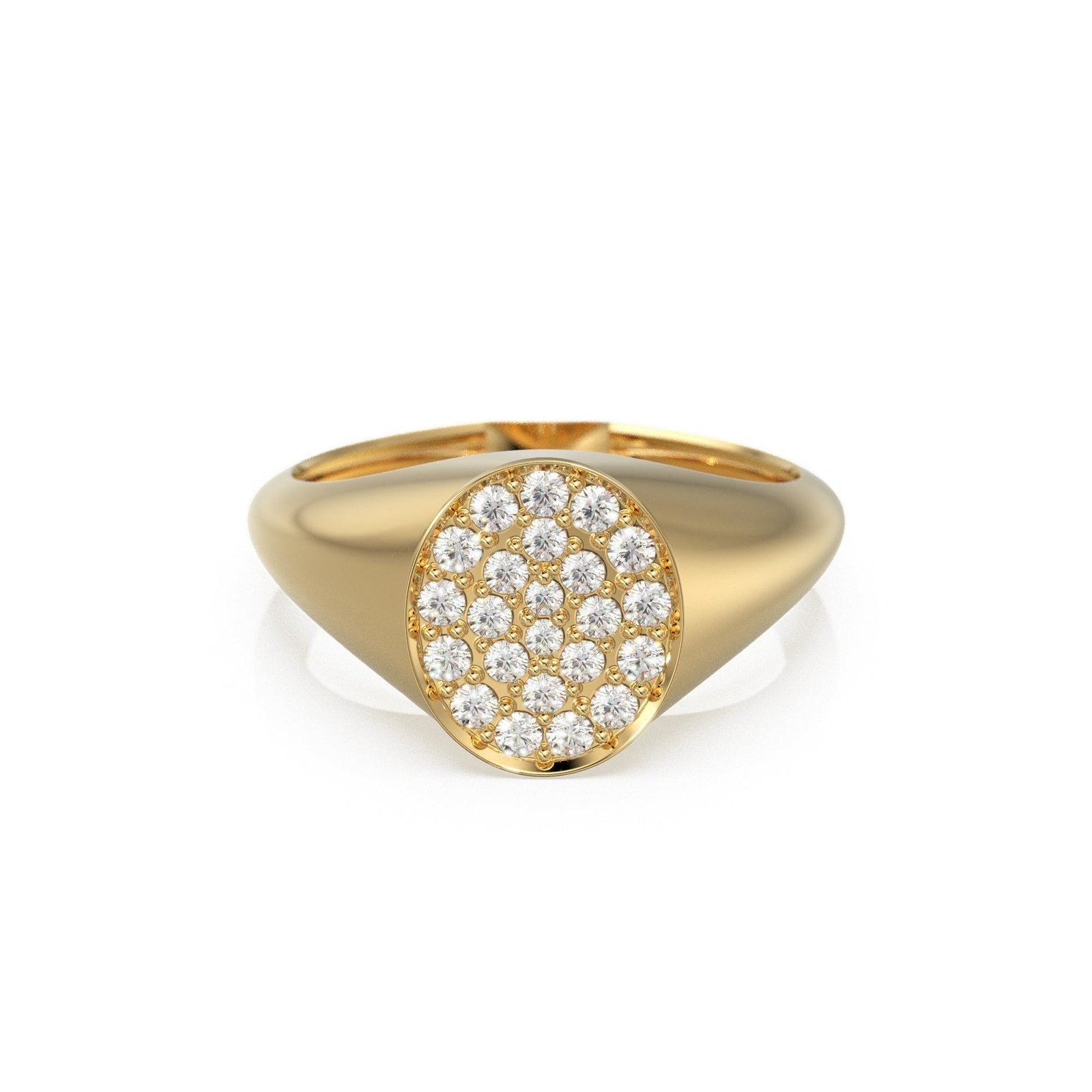 14k Gold Diamond Signet Ring / Micro Pave Diamond Pinky Ring in 14k Gold / Gold Ring / Pave Pinky Disc Ring / Gift for Mom, Birthday Gift