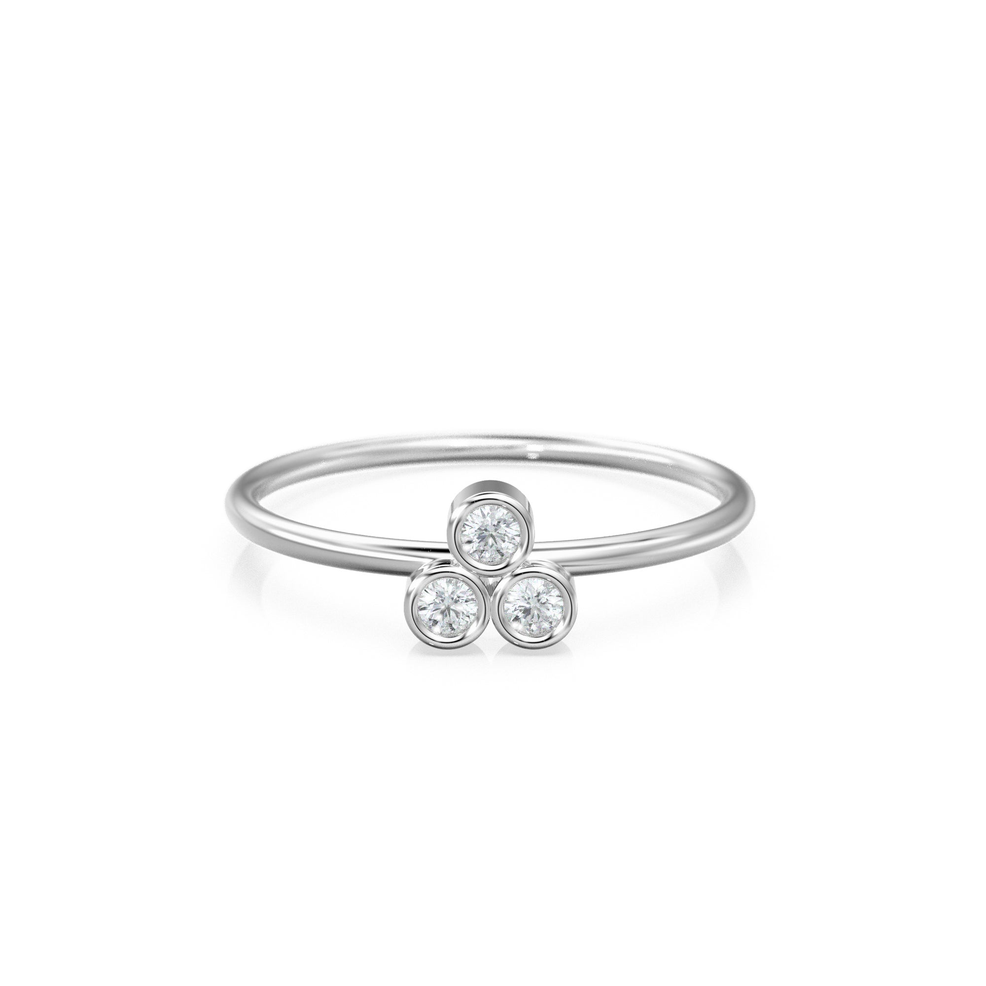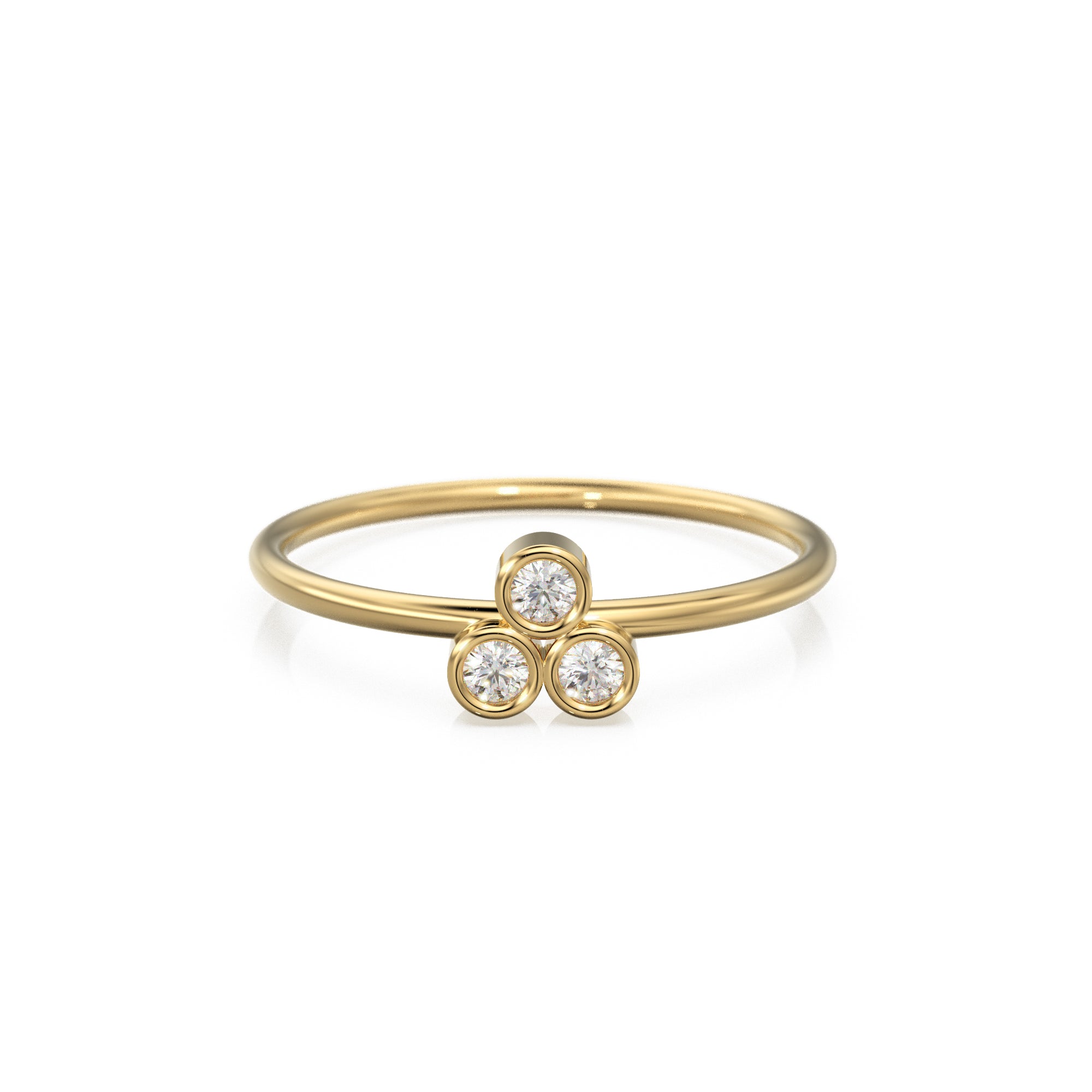14k Gold Bezel Setting Diamond Ring / Dainty Diamond Ring / Thin Diamond Ring / Gold Diamond Ring / Three Stone Ring / Simple Diamond Ring
