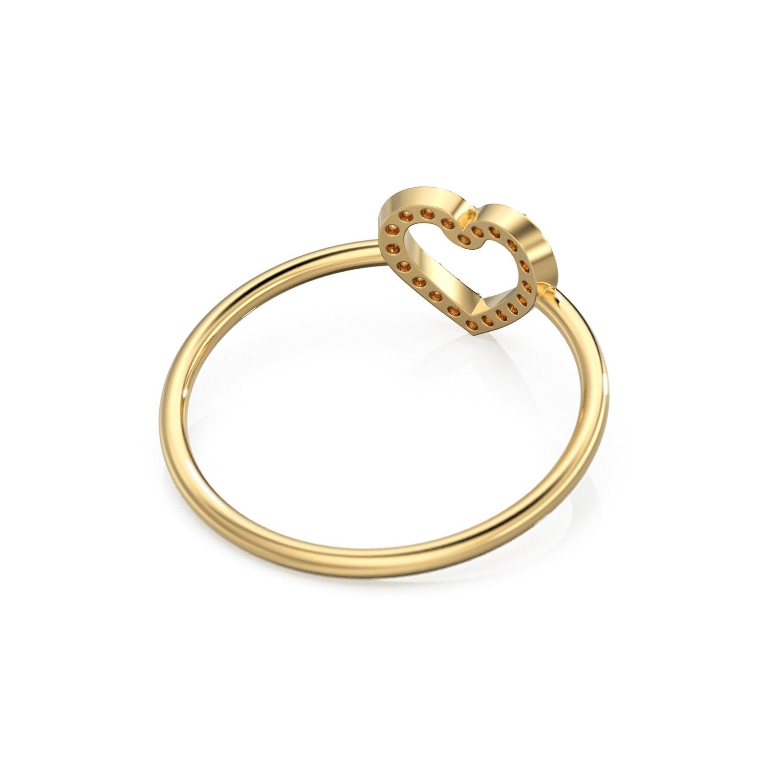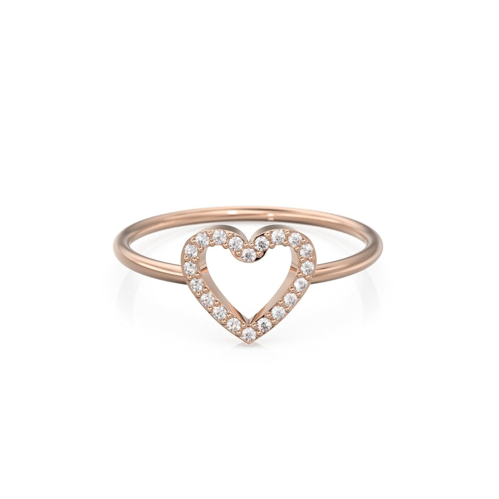 Diamond Heart Ring / Heart Shaped 14k Gold Diamond Women's Wedding Ring / Love Gold Ring / Heart Cute Gold Ring