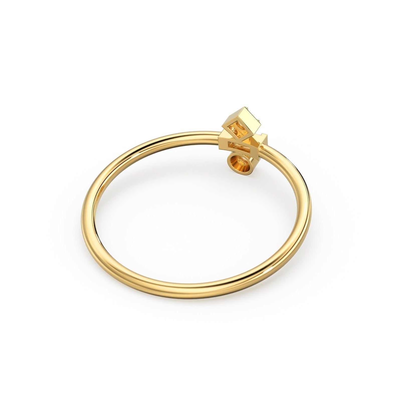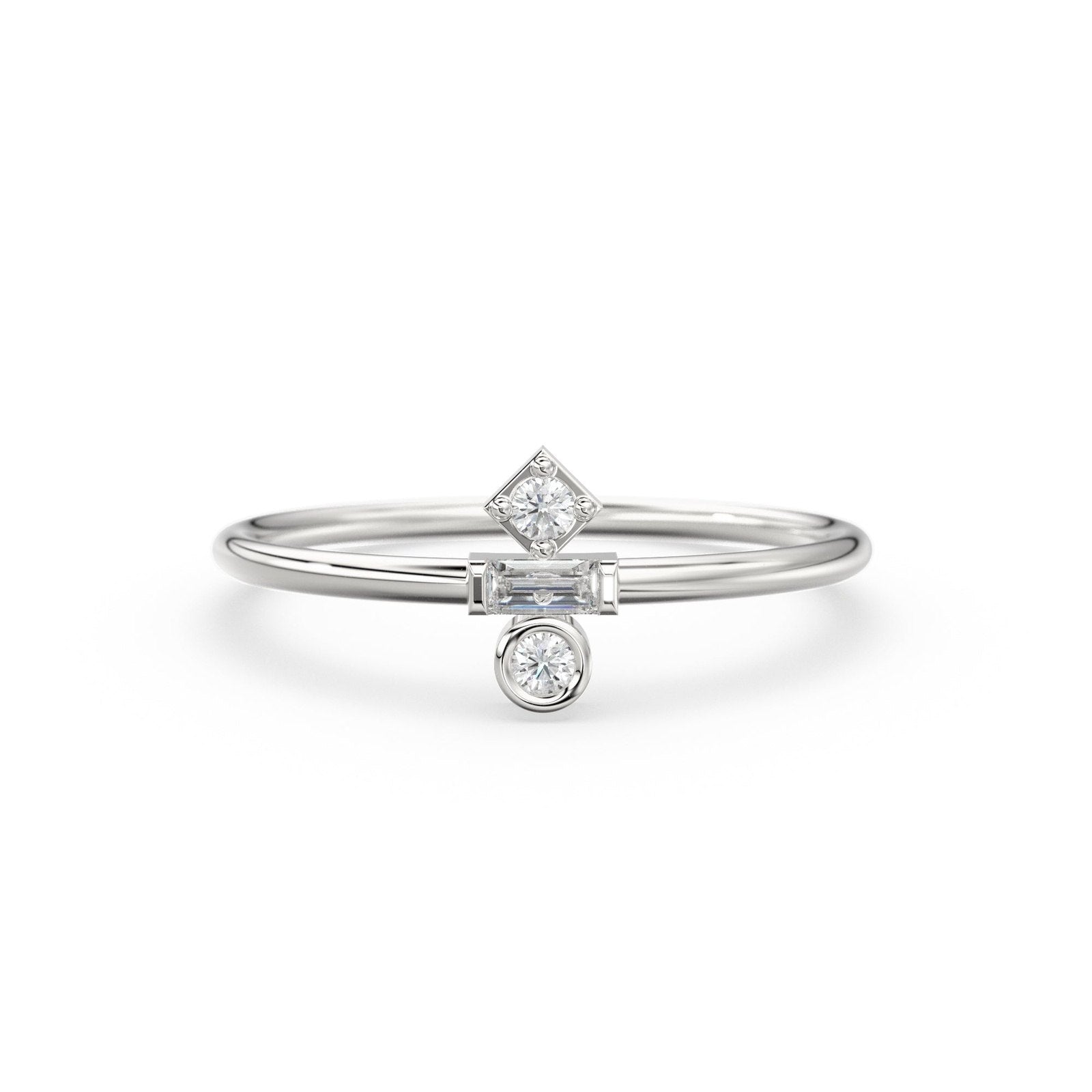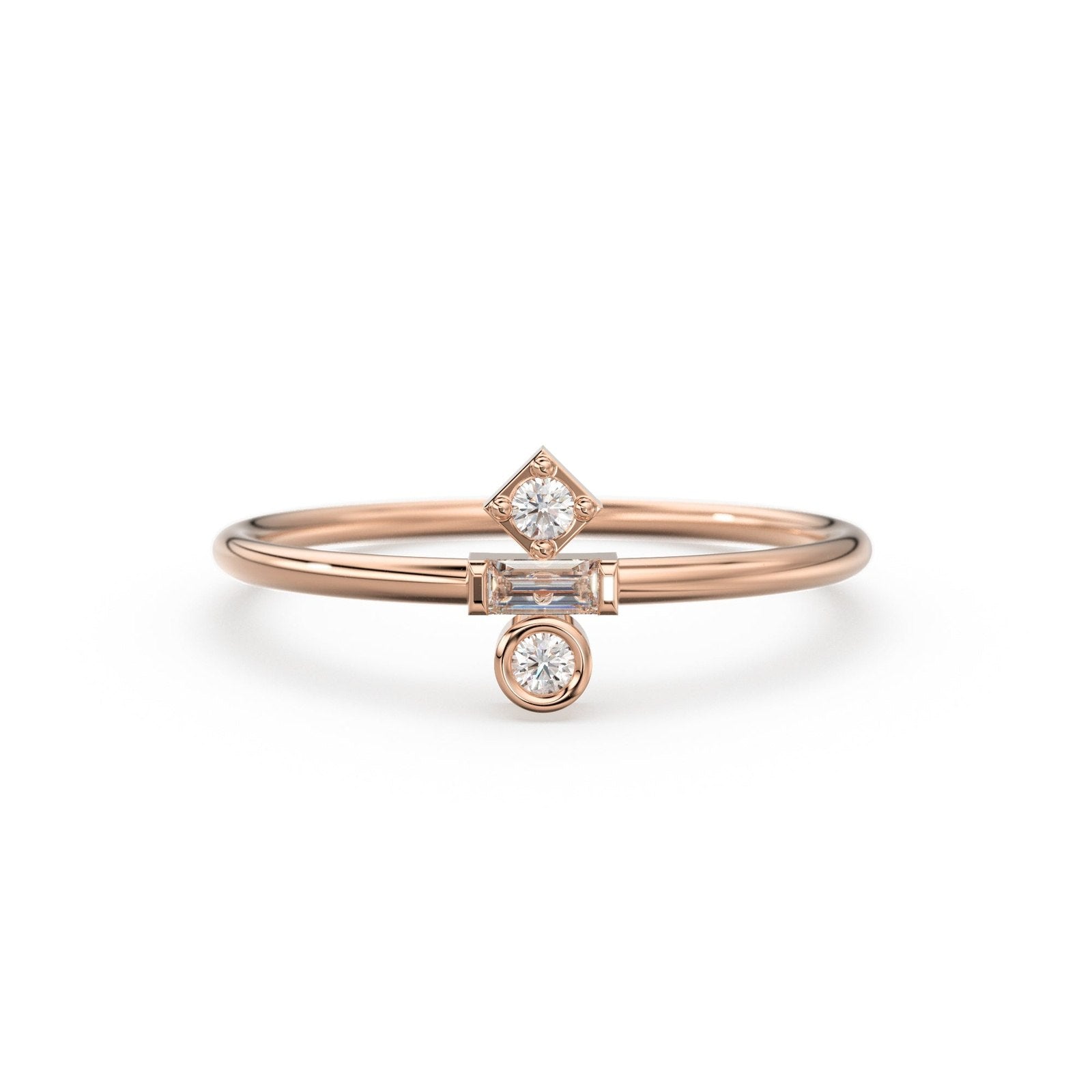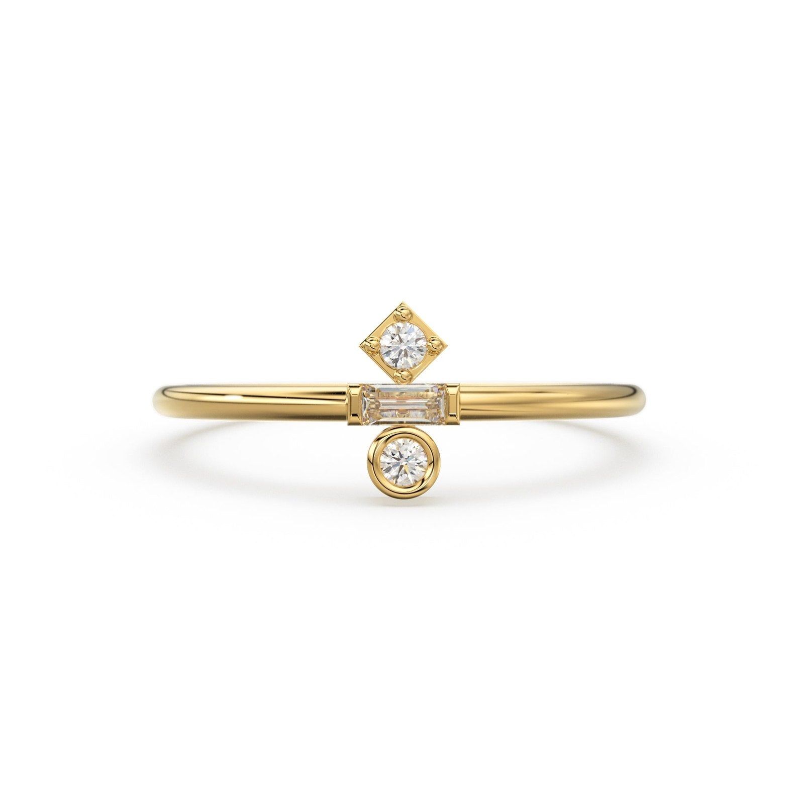 Baguette Diamond Ring / 14k Gold Baguette and Round Cut Diamond Ring / Minimalist Baguette Ring / Dainty Mix Diamond Ring